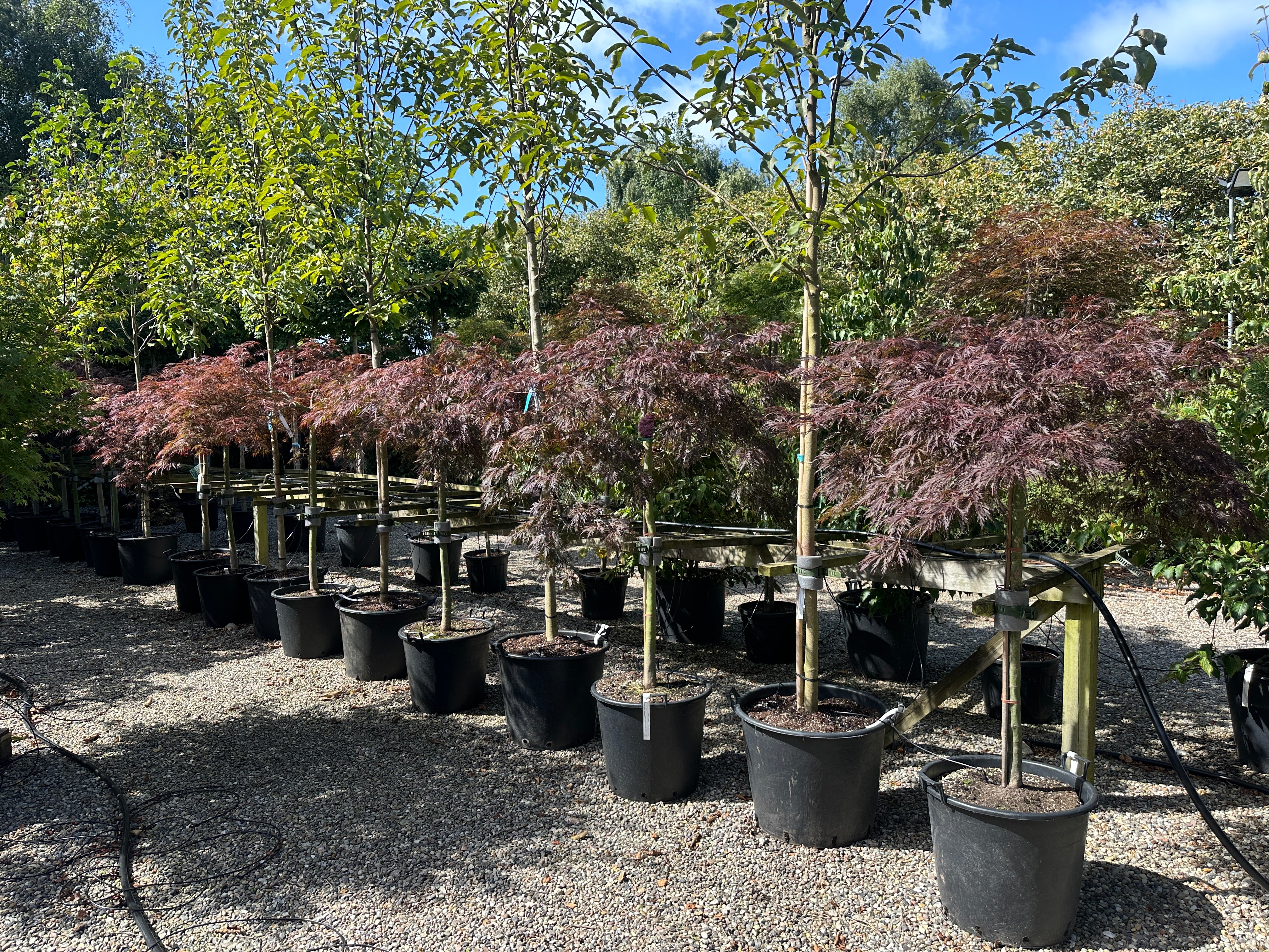 Vanding: Man kan enten vande med vandingsposer, drænslange Ø70mm omkring klumpen eller etablere en lille jordvold der danner et trug omkring klumpen. Vigtigt der grundvandes ca. 1 gang ugentlig i vækstsæsonen med hensyntagen til nedbør og jordbundsforhold. (Vær opmærksom på en regnbyge ikke giver noget/ meget lidt vand til rodklumpen.)