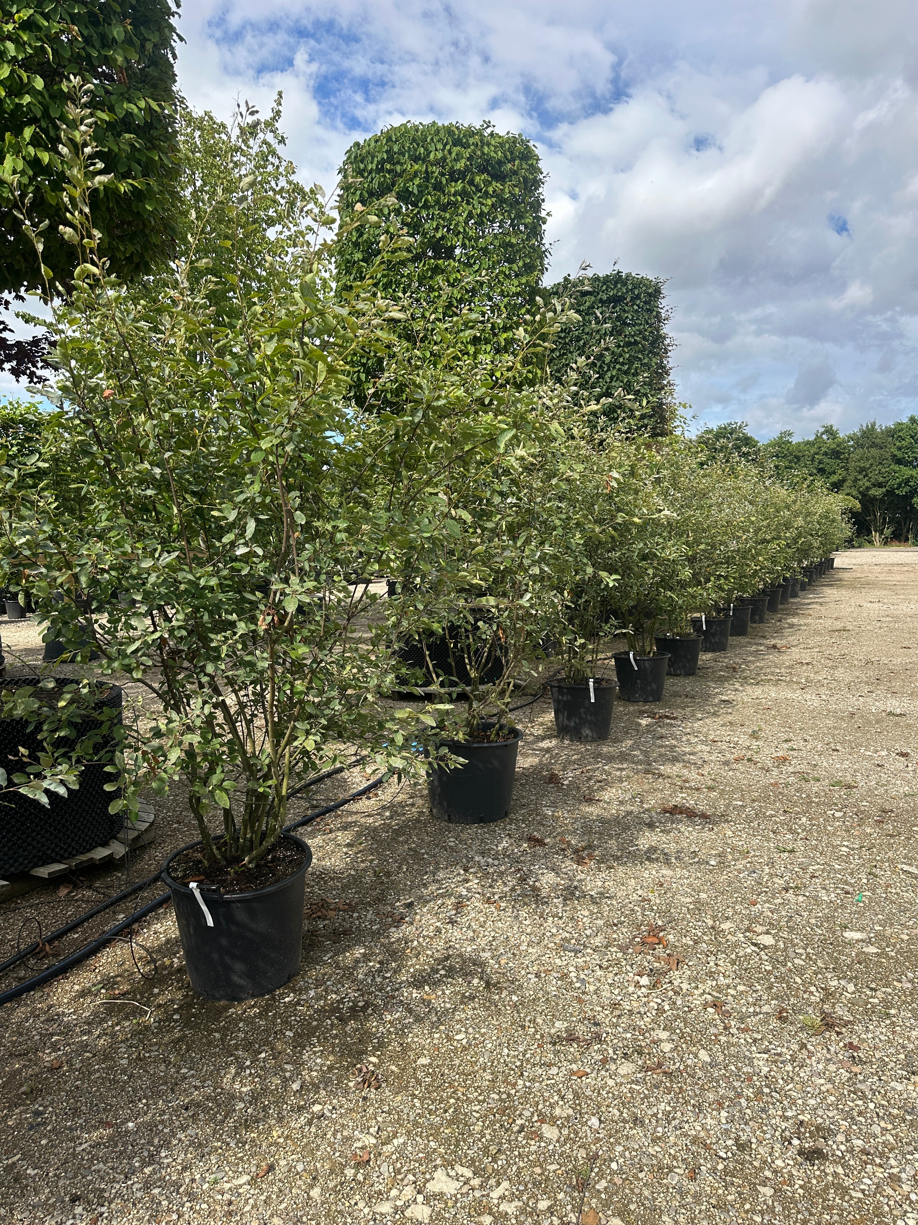 Vanding: Man kan enten vande med vandingsposer, drænslange Ø70mm omkring klumpen eller etablere en lille jordvold der danner et trug omkring klumpen. Vigtigt der grundvandes ca. 1 gang ugentlig i vækstsæsonen med hensyntagen til nedbør og jordbundsforhold. (Vær opmærksom på en regnbyge ikke giver noget/ meget lidt vand til rodklumpen.)