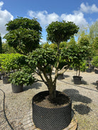 Plantning: Planterne håndteres som beskrevet under håndtering. Lærred og metal trådnet skal blive på klumpen, det forsvinder indenfor 1-2 år. Hvis trådnet er tæt på rodhalsen, kan der være risikon for at trådnettet kan skade barken. Trådnette skæres derfor væk omkring rodhalsen. Evt plastik og sække der beskytter rodklumpen under transport fjernes inden plantning.