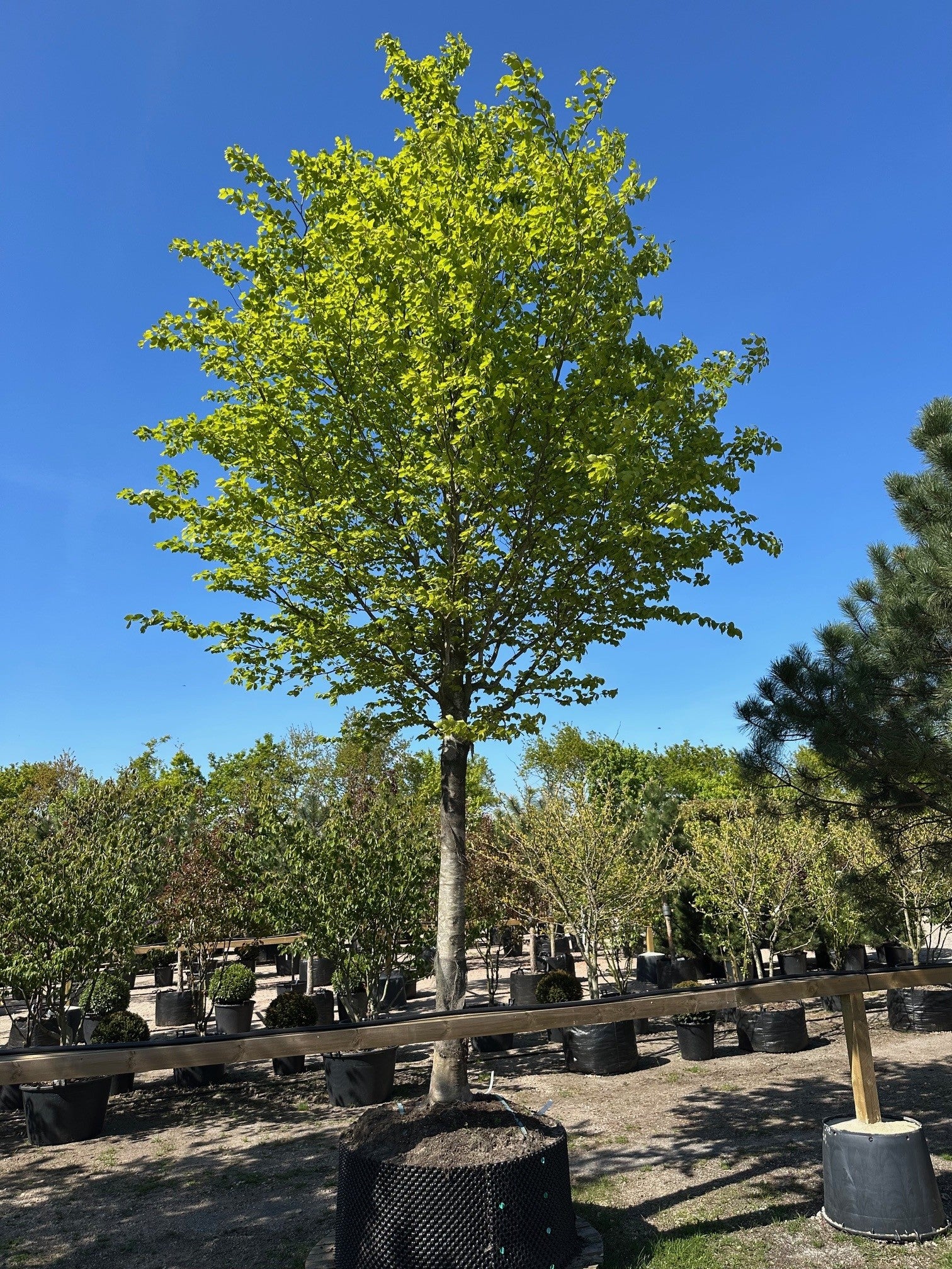 Plantning: Planterne håndteres som beskrevet under håndtering. Lærred og metal trådnet skal blive på klumpen, det forsvinder indenfor 1-2 år.  Hvis trådnet er tæt på rodhalsen, kan der være risikon for at trådnettet kan skade barken. Trådnette skæres derfor væk omkring rodhalsen. Evt plastik og sække der beskytter rodklumpen under transport fjernes inden plantning.