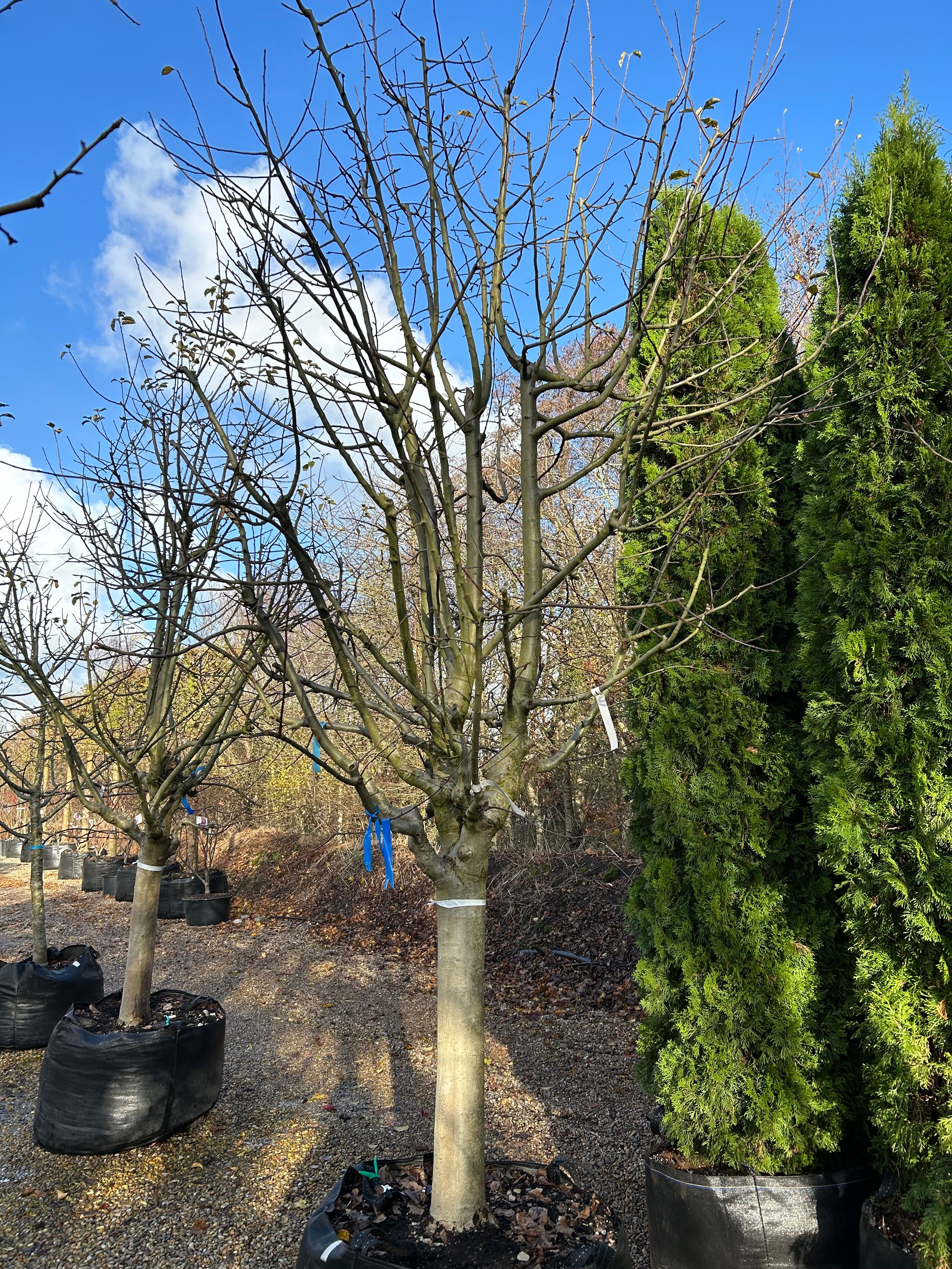 Plantning: Planterne håndteres som beskrevet under håndtering. Lærred og metal trådnet skal blive på klumpen, det forsvinder indenfor 1-2 år. Hvis trådnet er tæt på rodhalsen, kan der være risikon for at trådnettet kan skade barken. Trådnette skæres derfor væk omkring rodhalsen. Evt plastik og sække der beskytter rodklumpen under transport fjernes inden plantning.