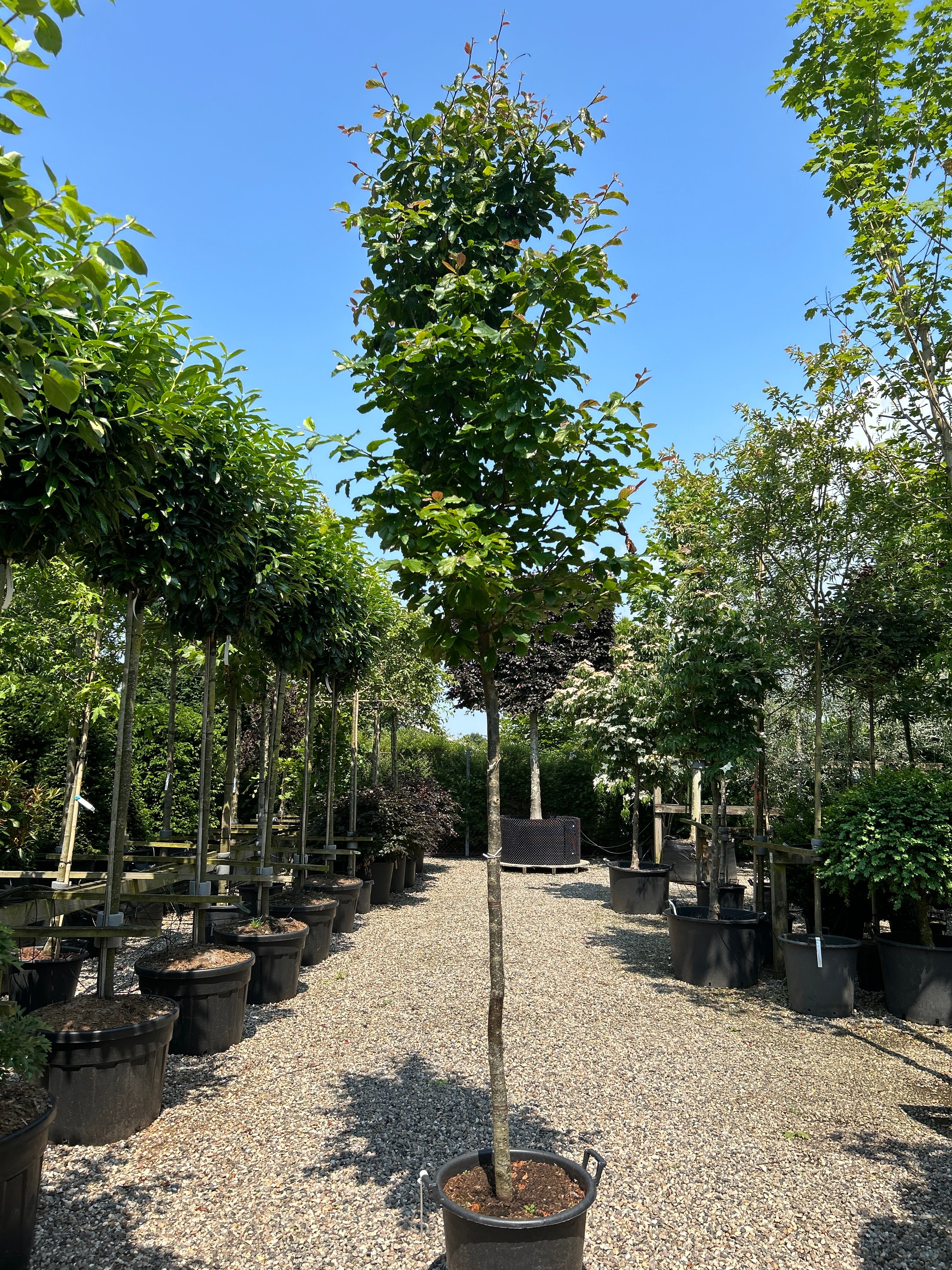 Plantning: Planterne håndteres som beskrevet under håndtering. Lærred og metal trådnet skal blive på klumpen, det forsvinder indenfor 1-2 år. Hvis trådnet er tæt på rodhalsen, kan der være risikon for at trådnettet kan skade barken. Trådnette skæres derfor væk omkring rodhalsen. Evt plastik og sække der beskytter rodklumpen under transport fjernes inden plantning.