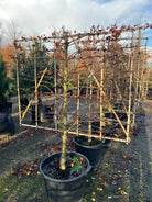 Plantning: Planterne håndteres som beskrevet under håndtering. Lærred og metal trådnet skal blive på klumpen, det forsvinder indenfor 1-2 år. Hvis trådnet er tæt på rodhalsen, kan der være risikon for at trådnettet kan skade barken. Trådnette skæres derfor væk omkring rodhalsen. Evt plastik og sække der beskytter rodklumpen under transport fjernes inden plantning.