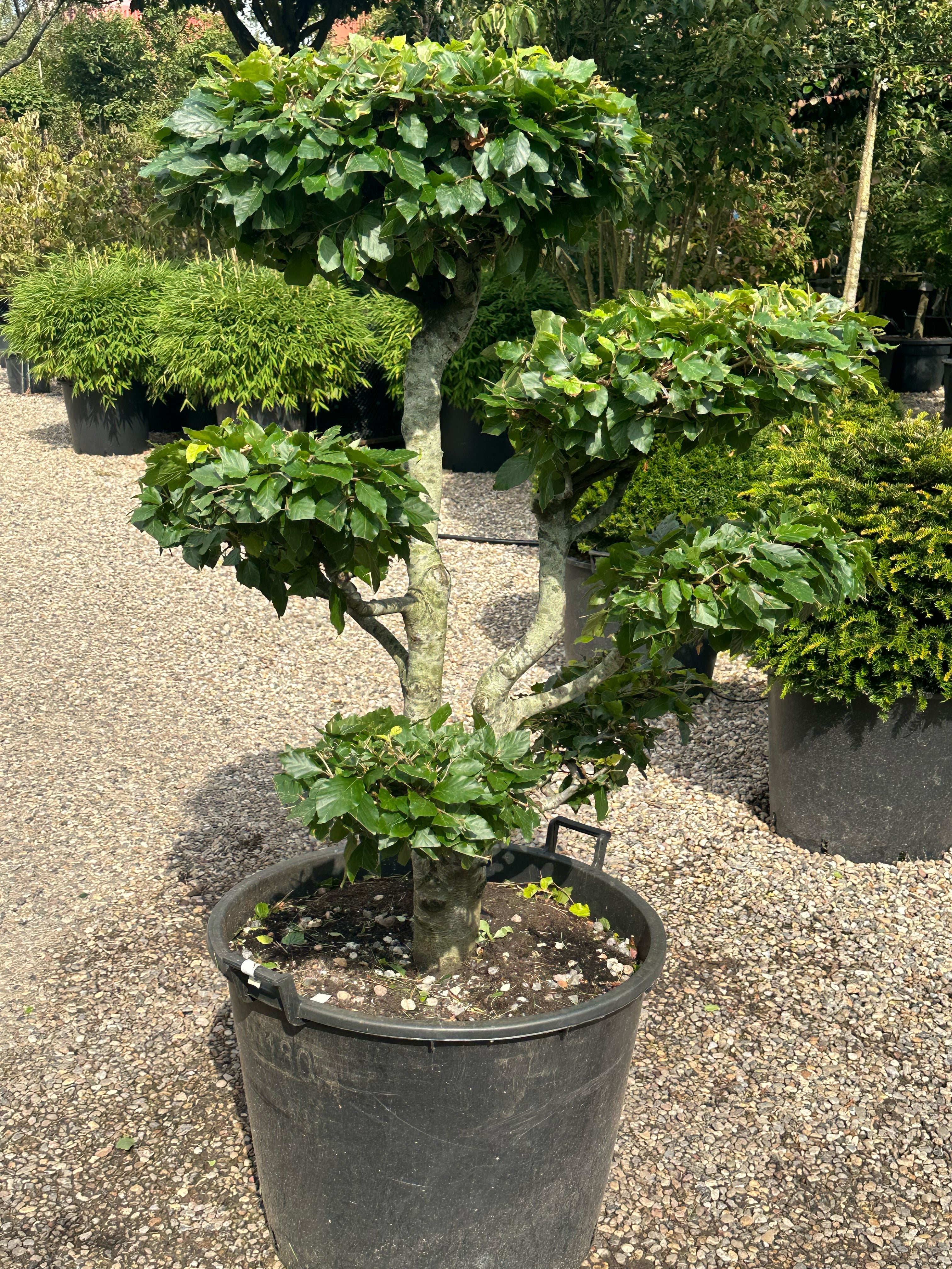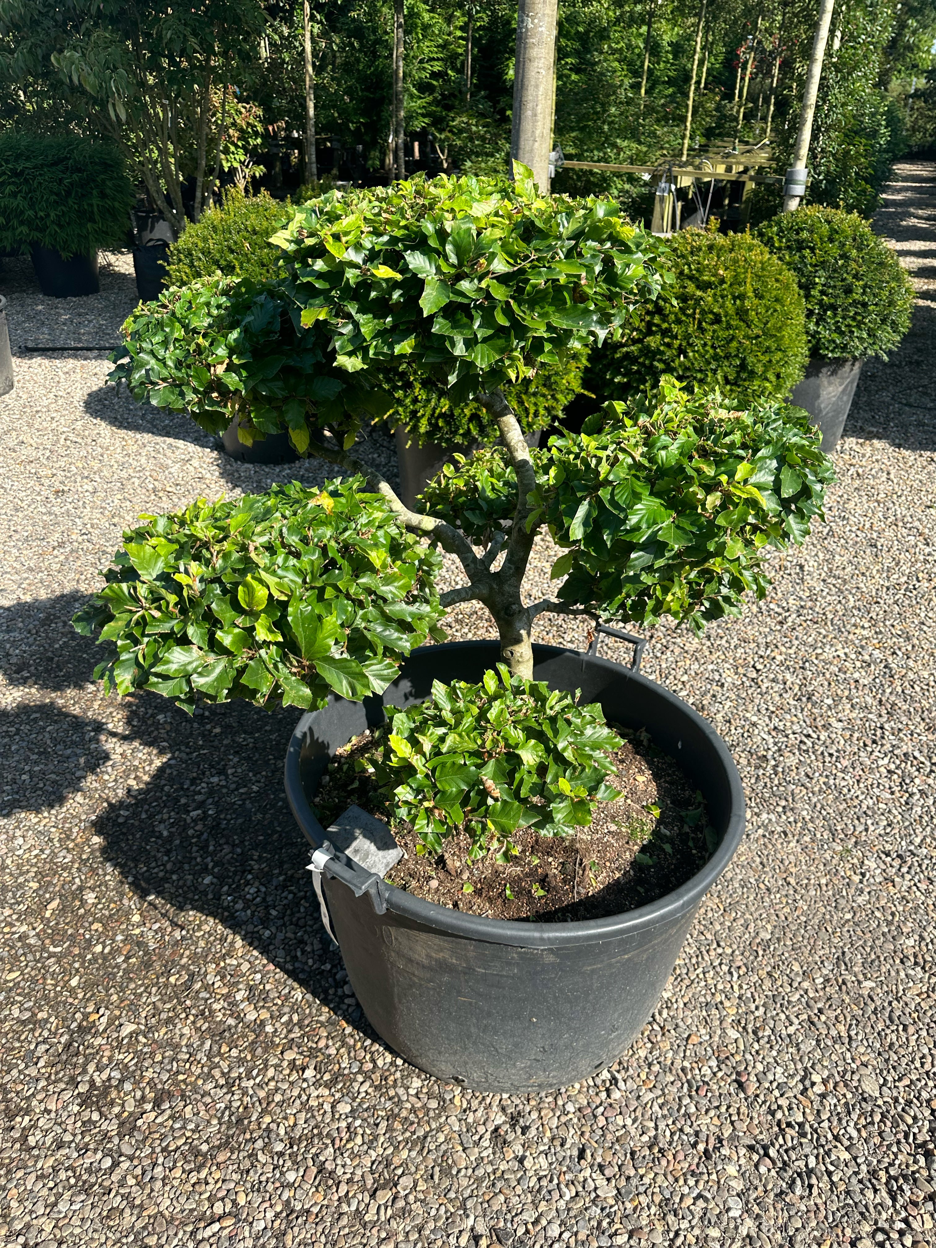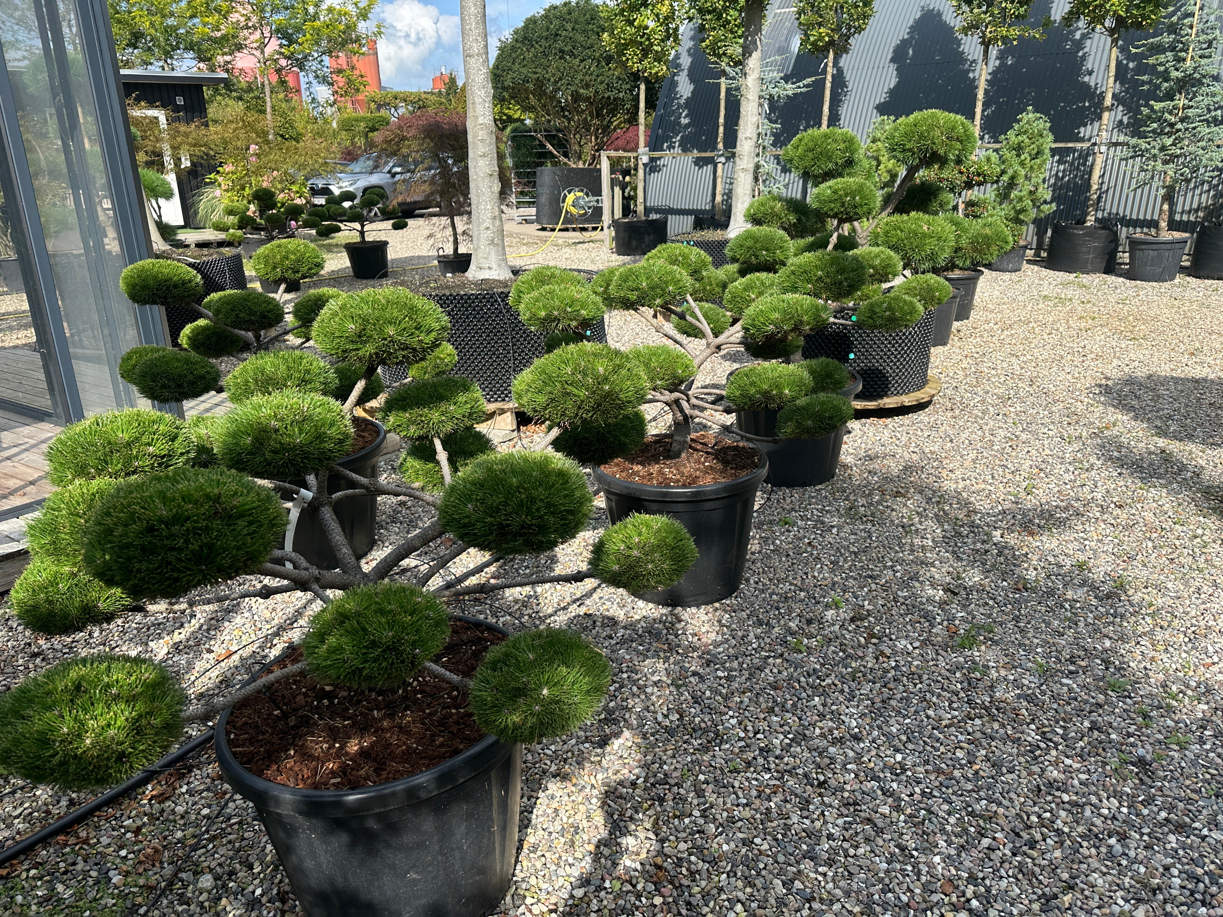 Vi har altid mange forskellige typer bonsai som bøg, fyr, taks mv. på lager i mange størrelser og prisklasser.