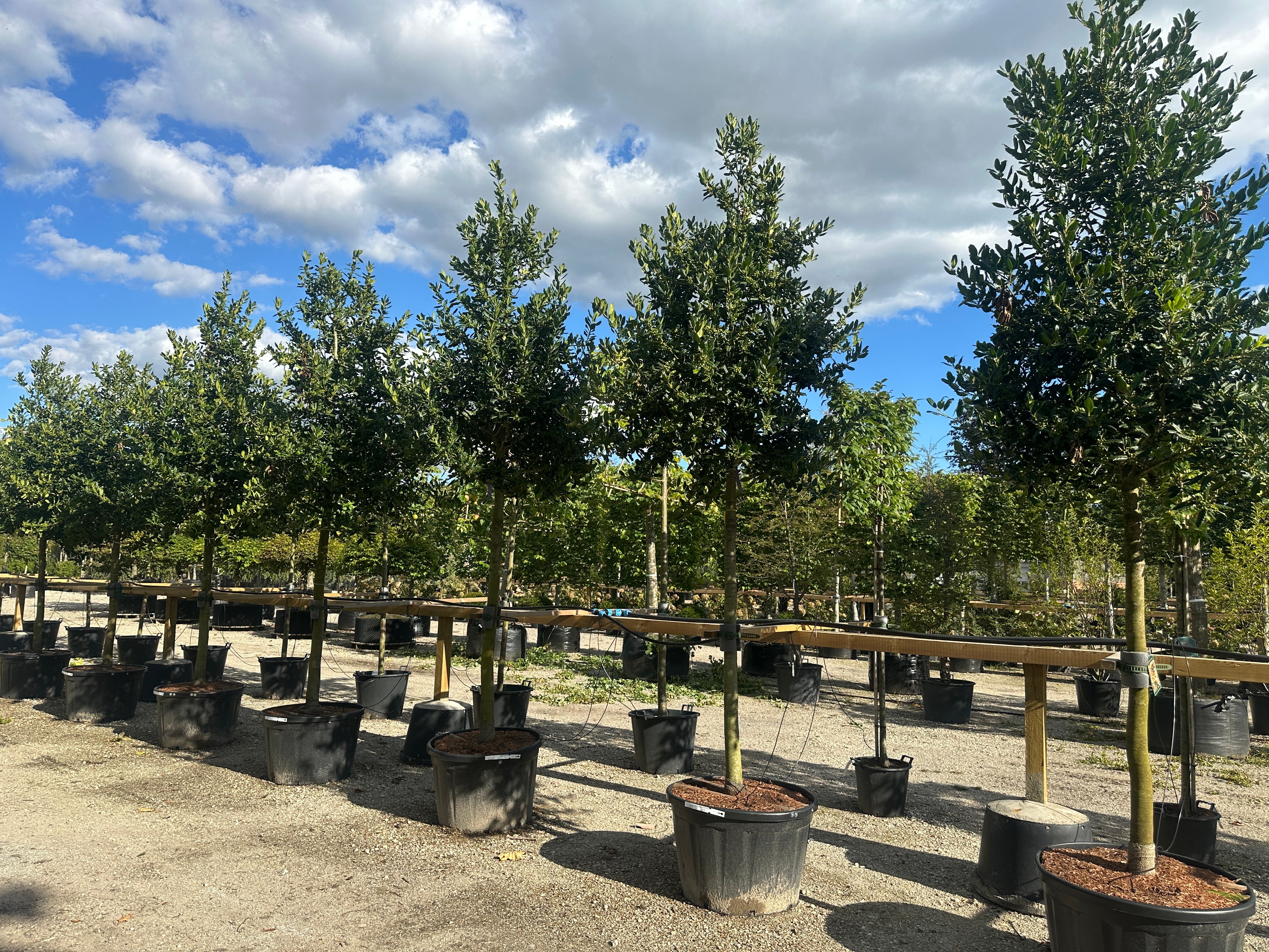Vanding: Man kan enten vande med vandingsposer, drænslange Ø70mm omkring klumpen eller etablere en lille jordvold der danner et trug omkring klumpen. Vigtigt der grundvandes ca. 1 gang ugentlig i vækstsæsonen med hensyntagen til nedbør og jordbundsforhold. (Vær opmærksom på en regnbyge ikke giver noget/ meget lidt vand til rodklumpen.)