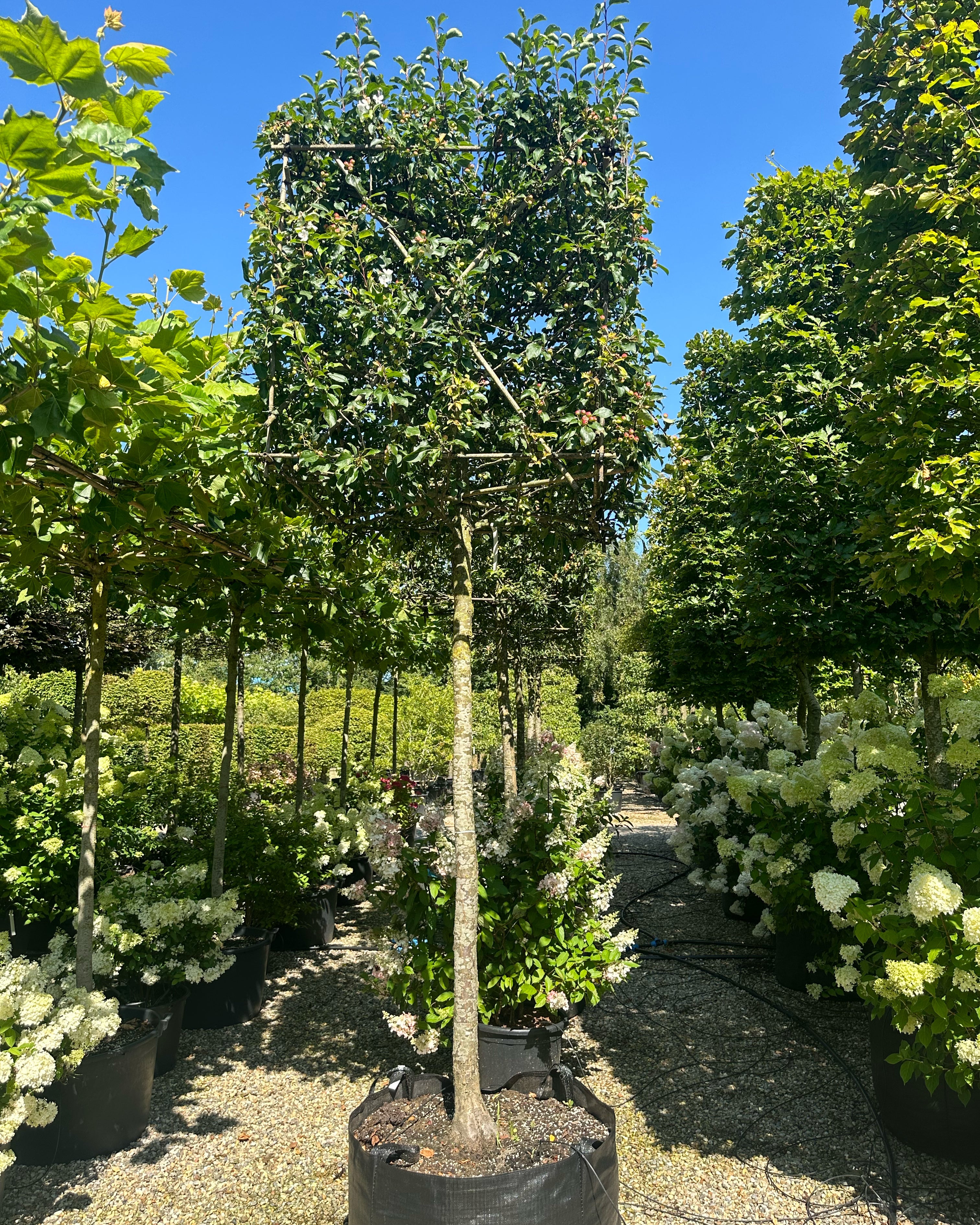 Også kaldet “boks klippede” træer fås i Avnbøg, Bøg, Blodbøg, Paradisæbletræer, lind.