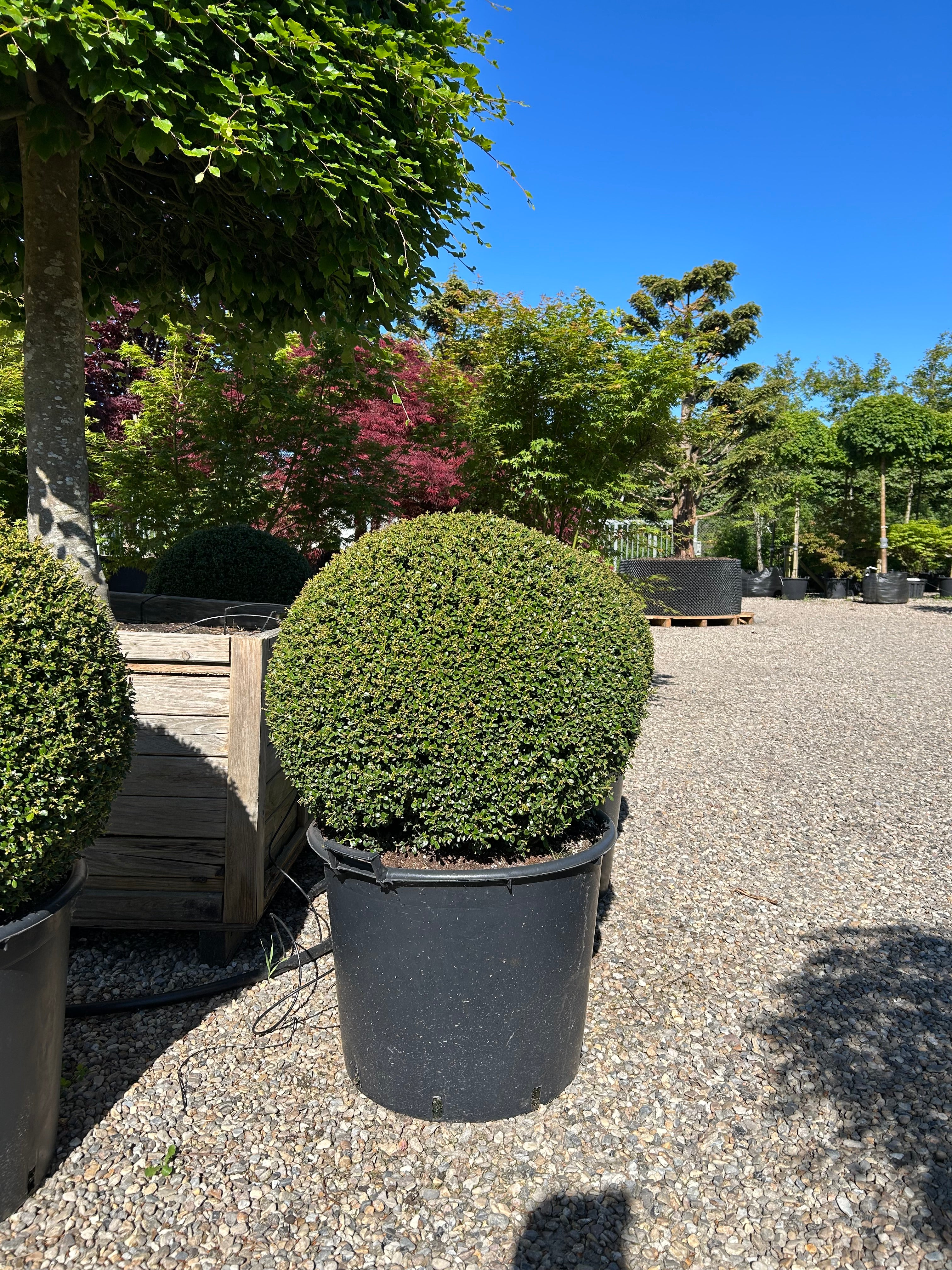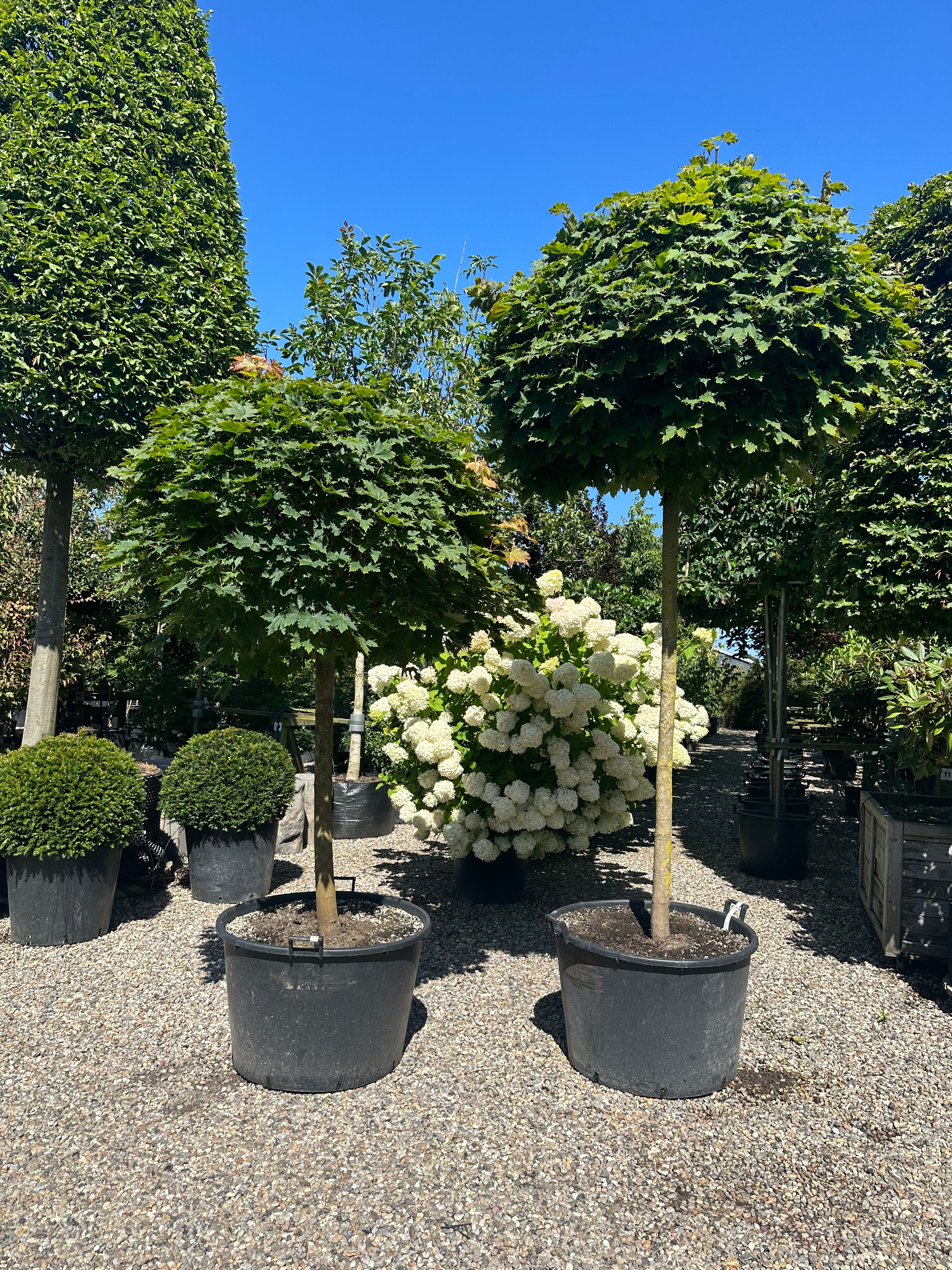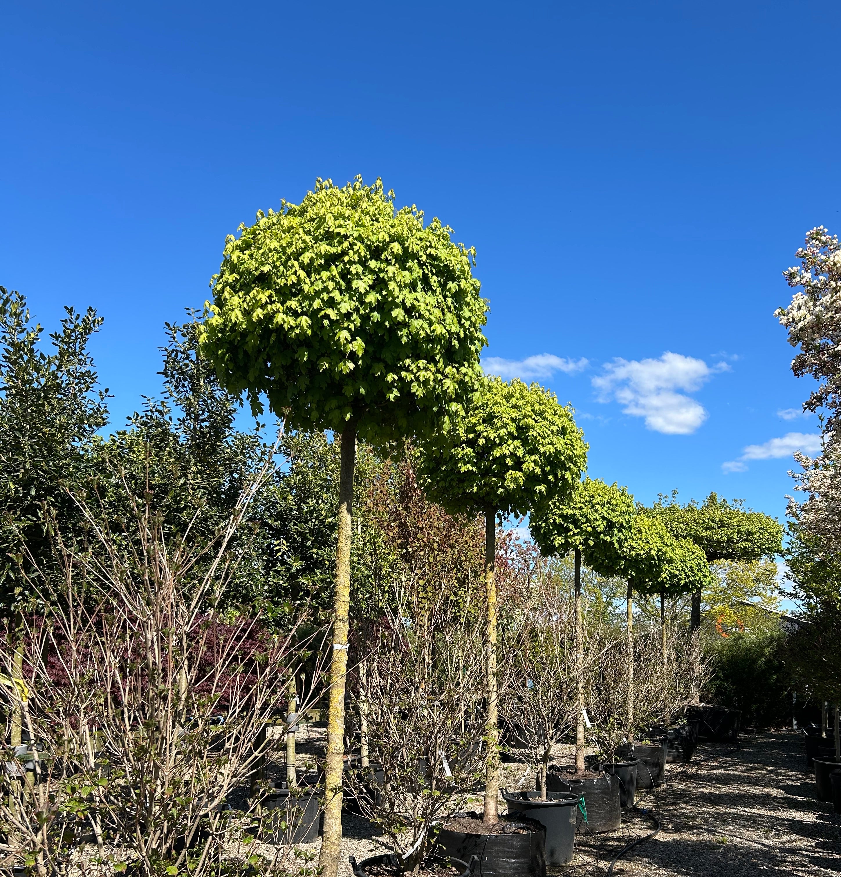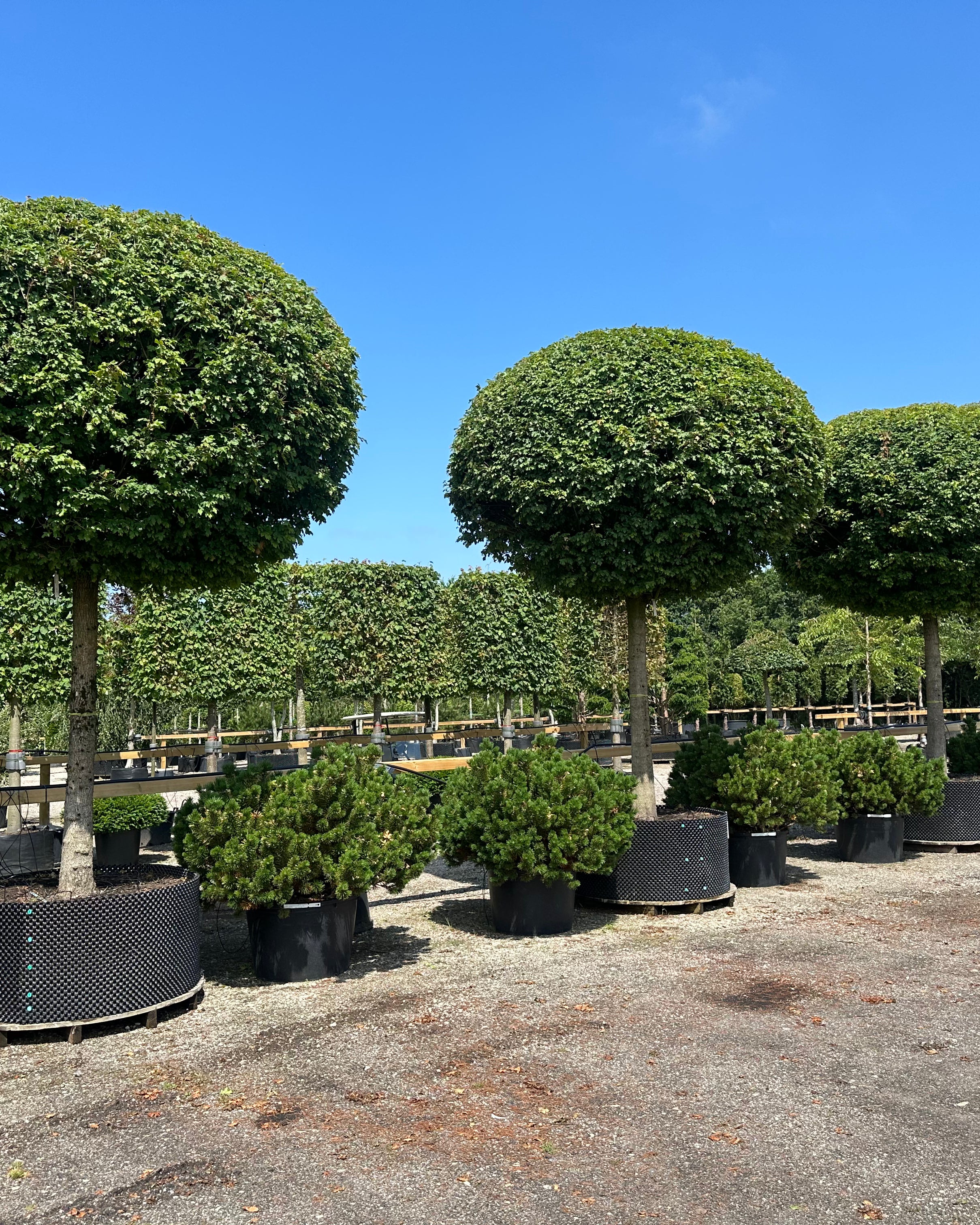 Den kugleformede krone giver et rent, symmetrisk og stiliseret udtryk, der tilfører haven eller landskabet et formelt præg.