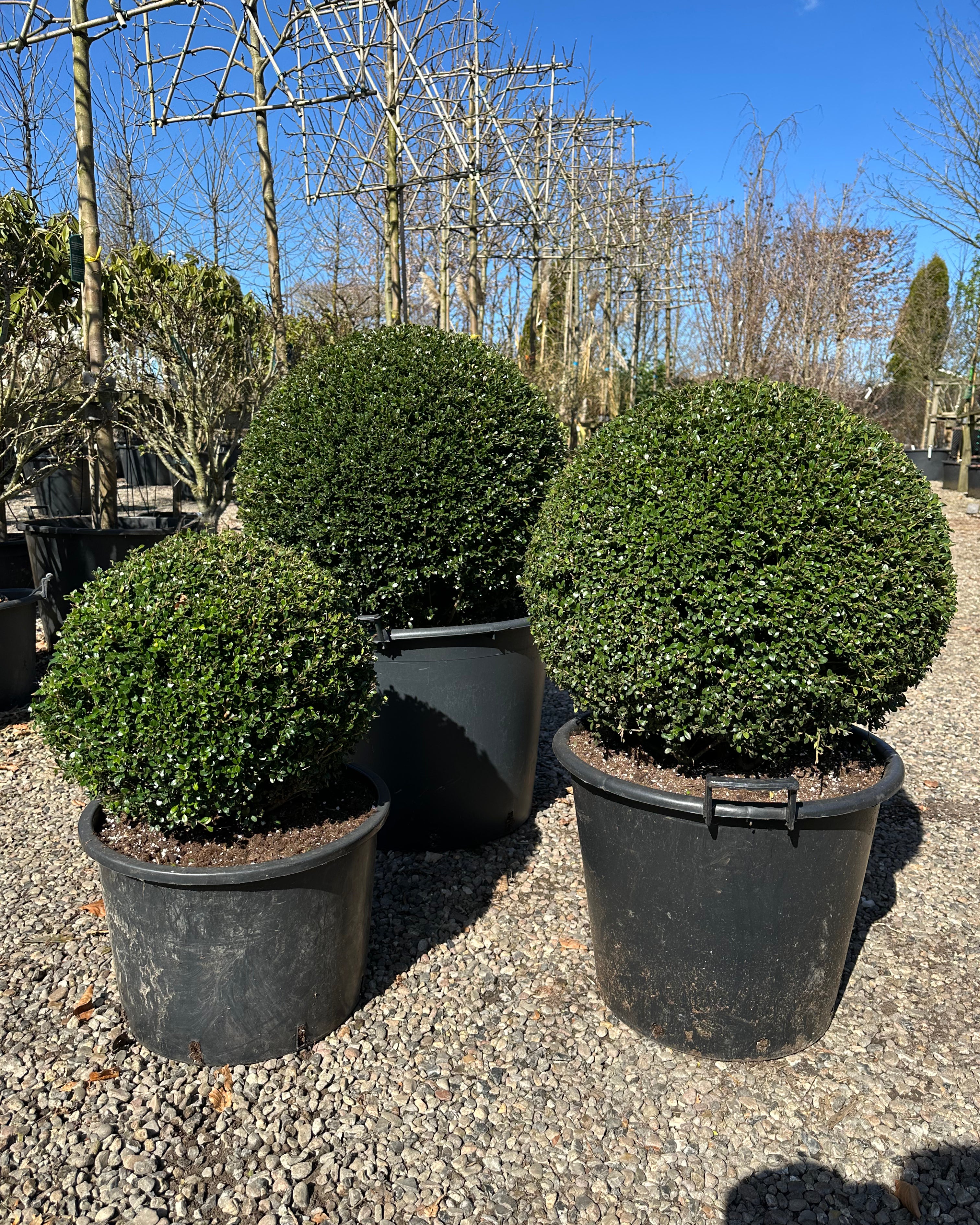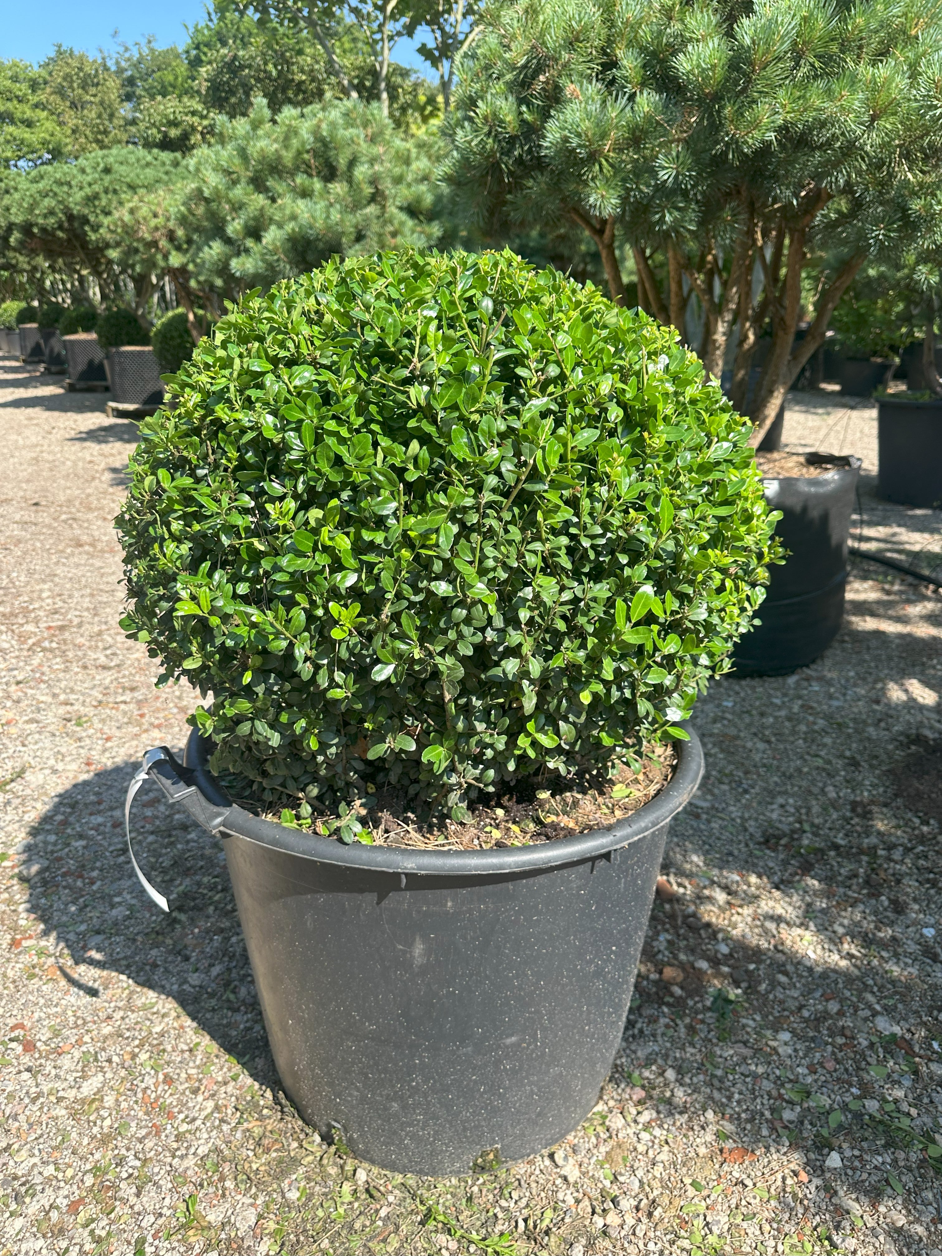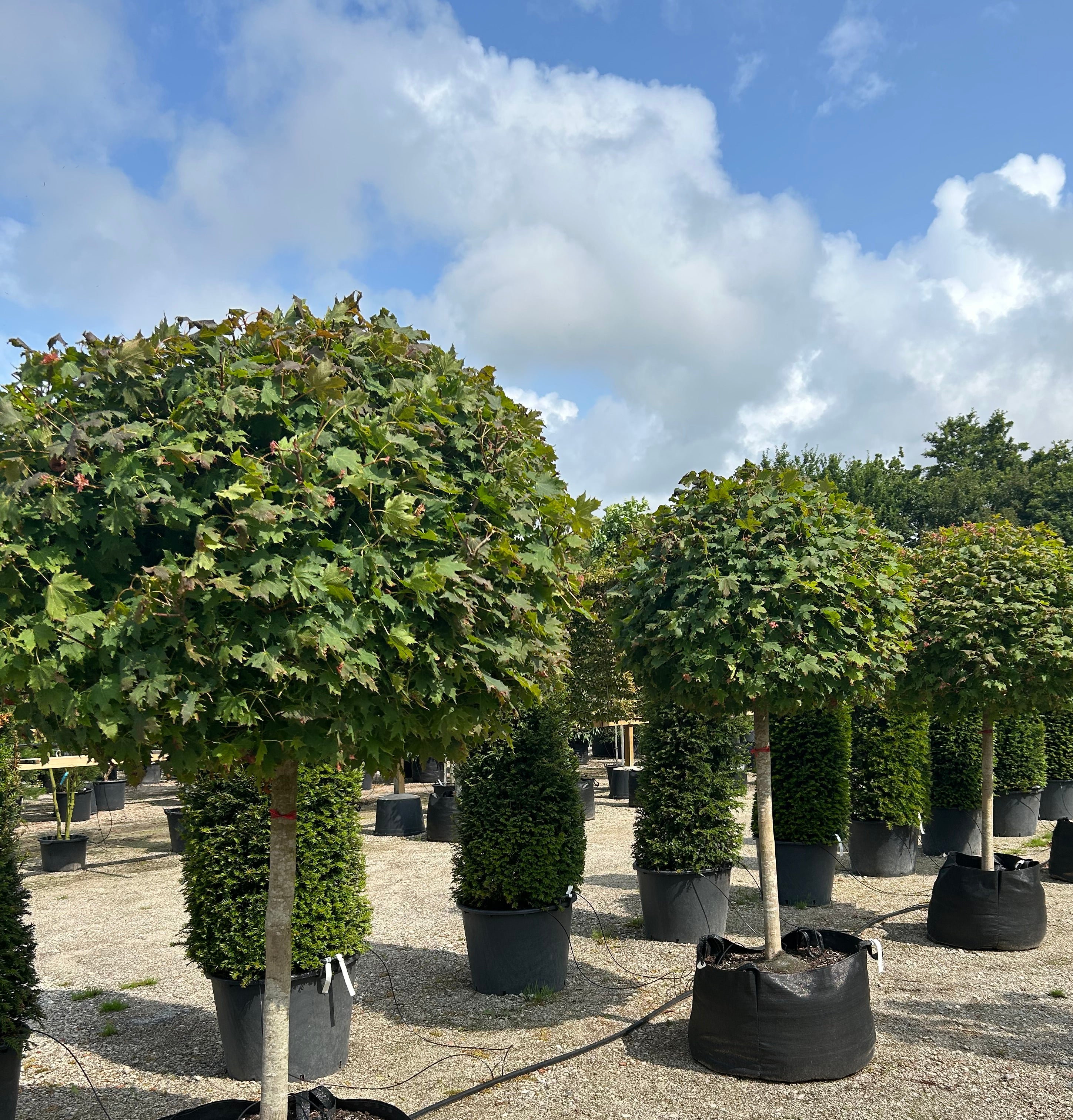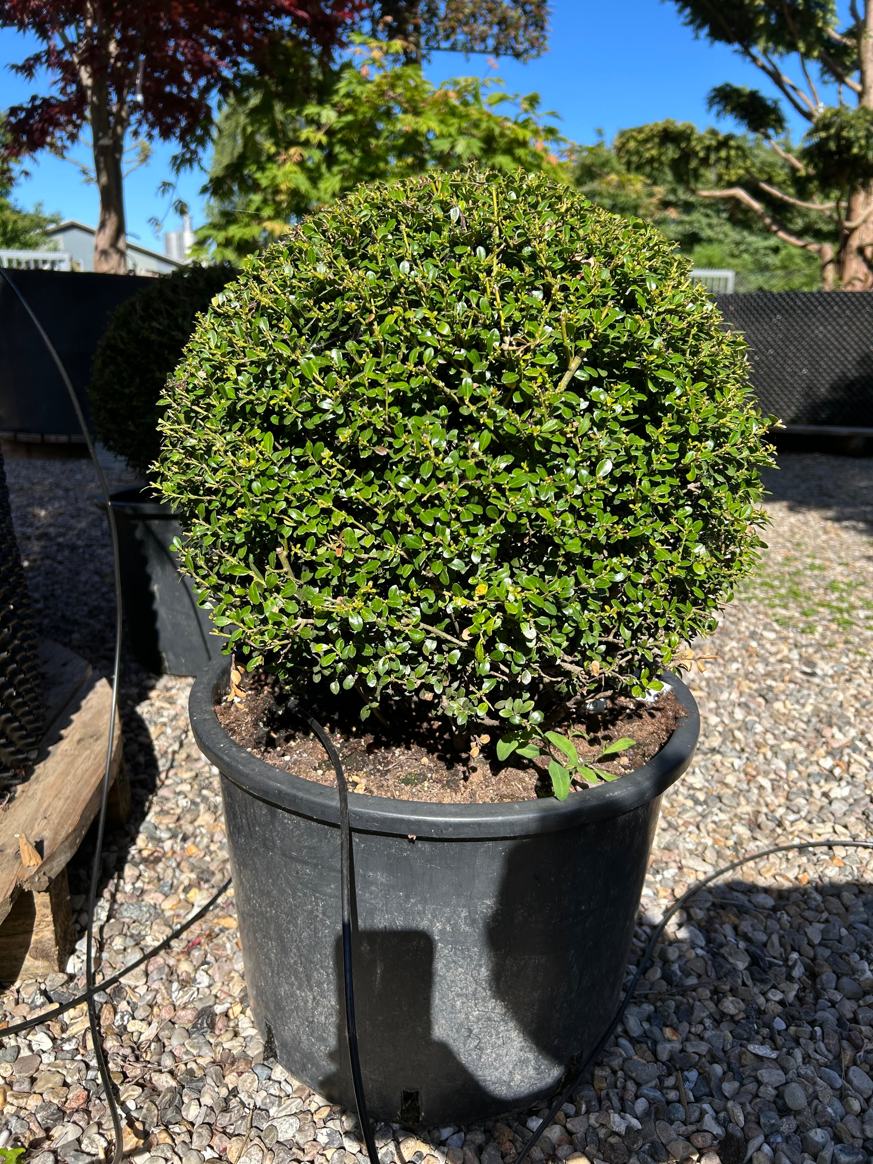 Den kugleformede krone giver et rent, symmetrisk og stiliseret udtryk, der tilfører haven eller landskabet et formelt præg.