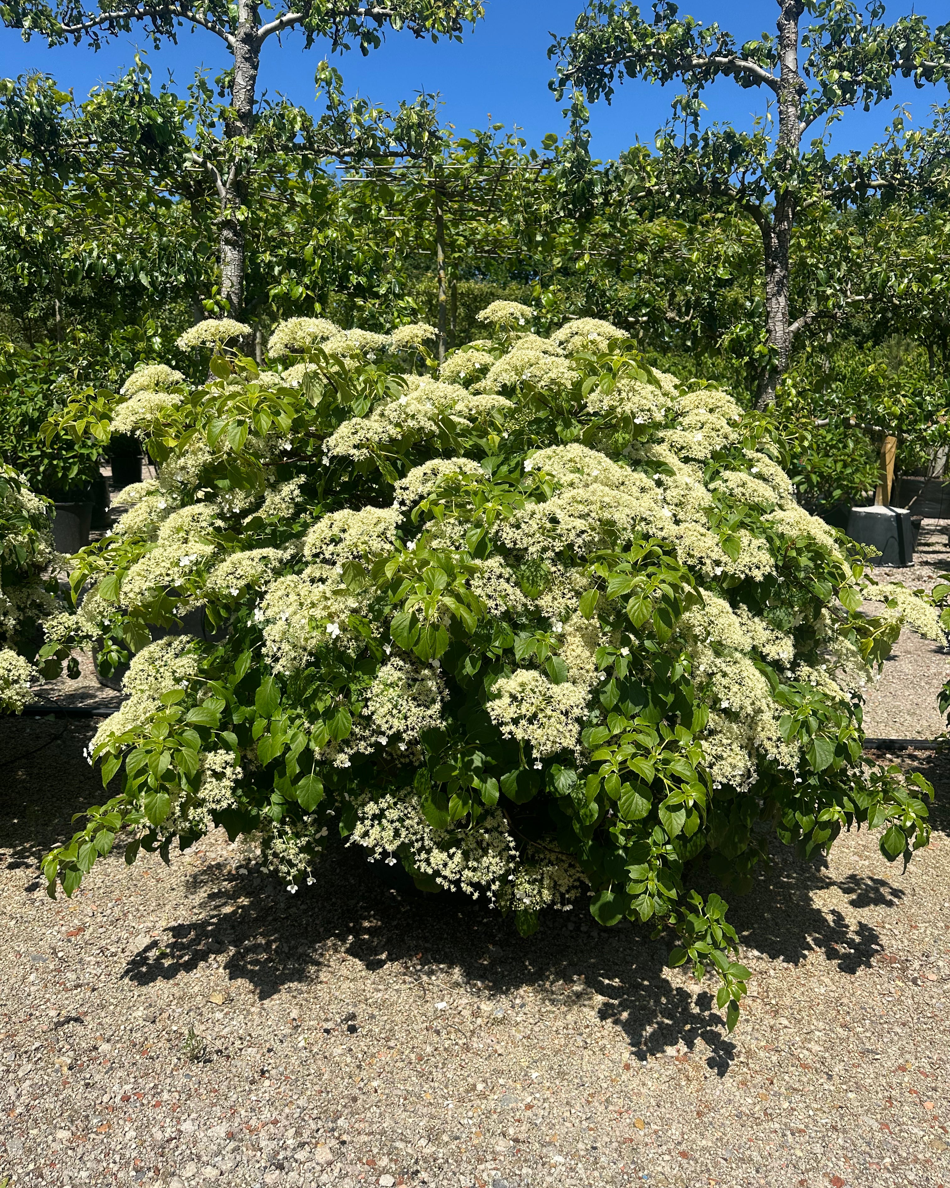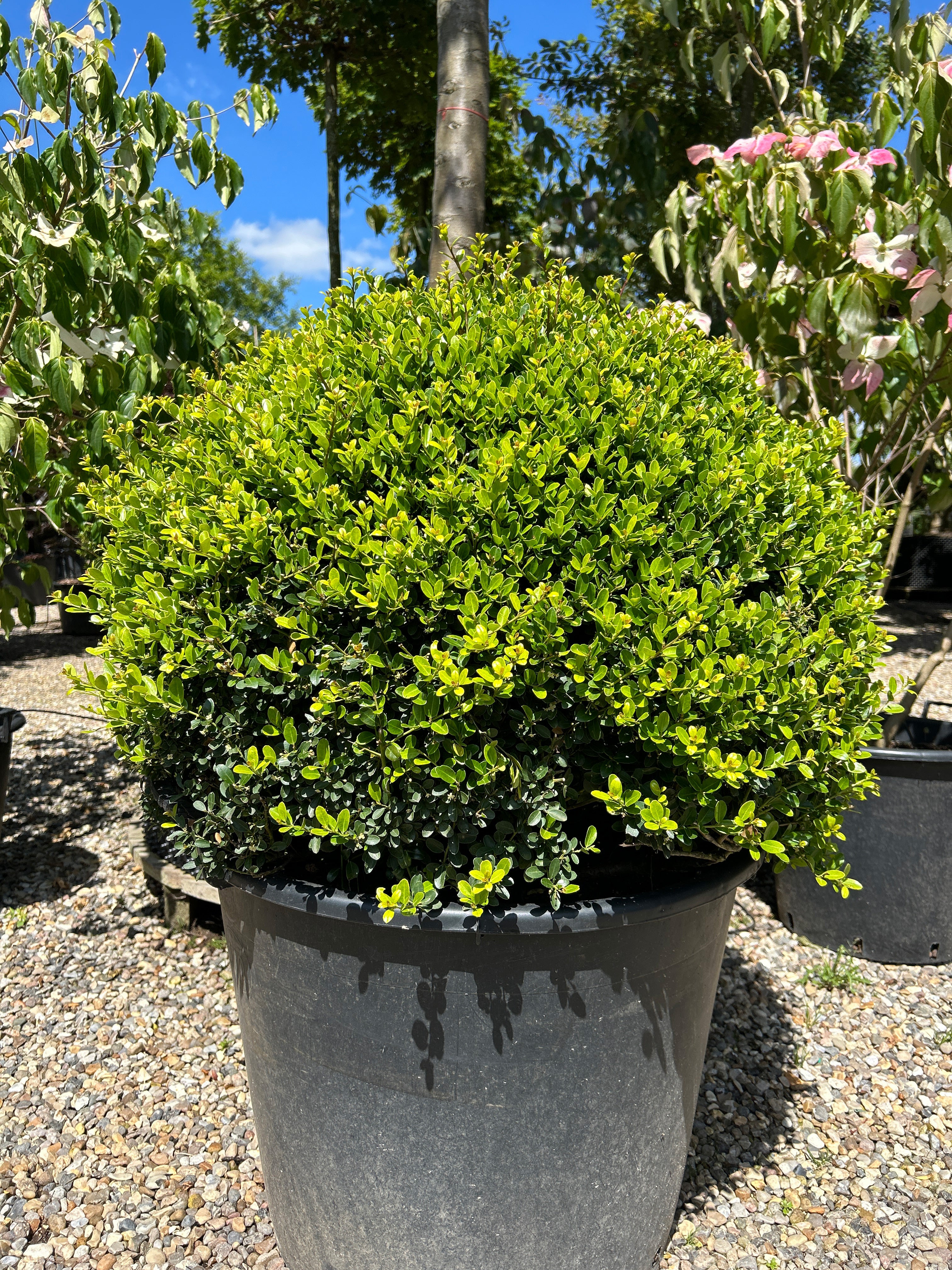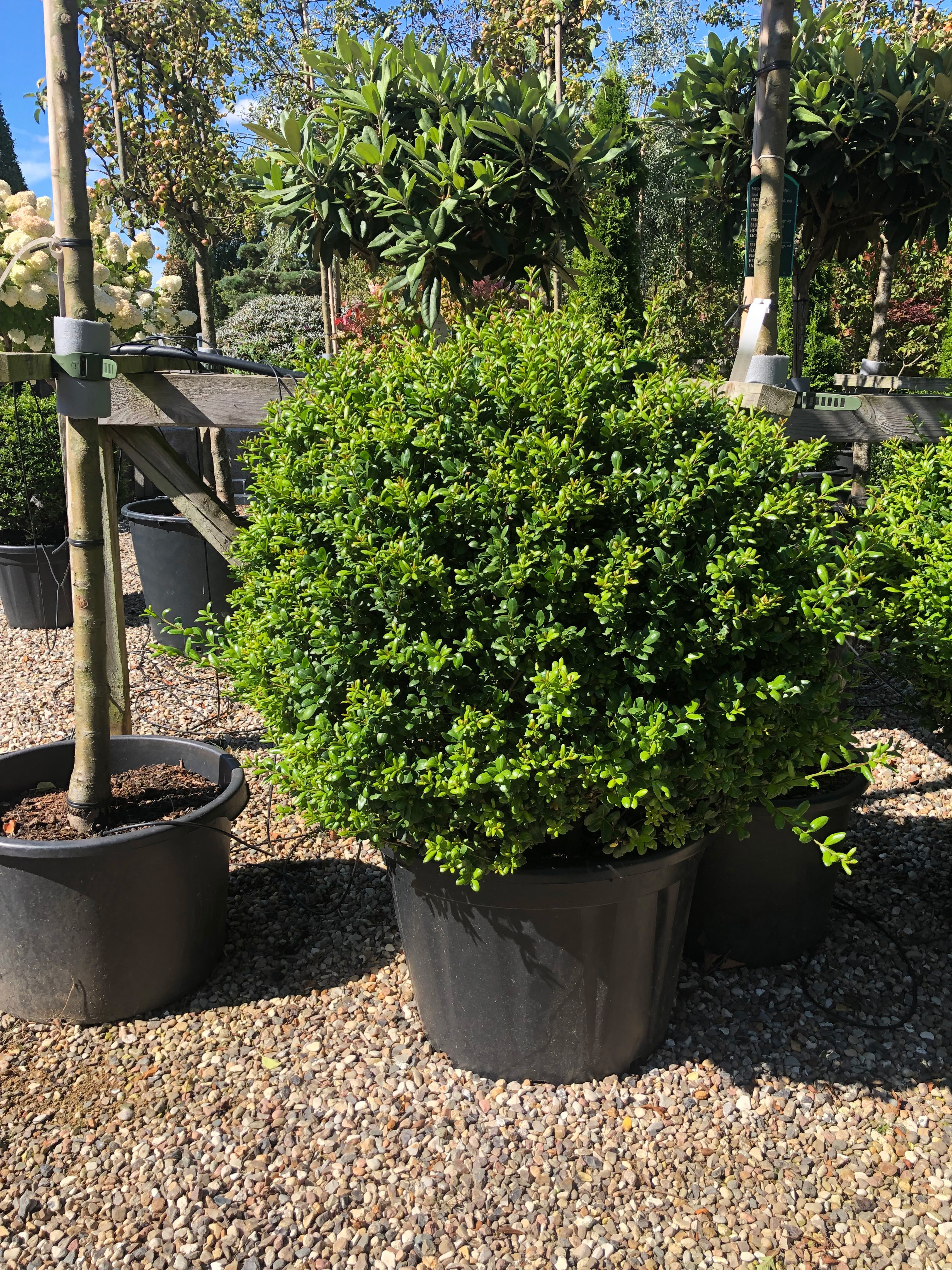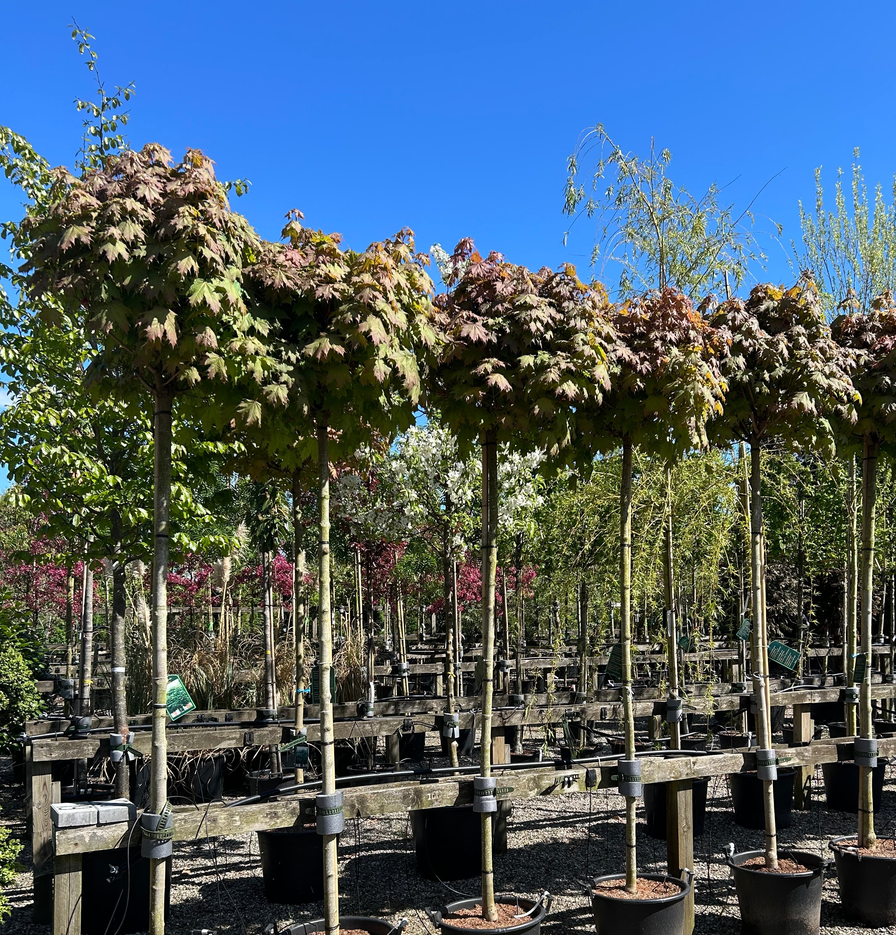 Den kugleformede krone giver et rent, symmetrisk og stiliseret udtryk, der tilfører haven eller landskabet et formelt præg.