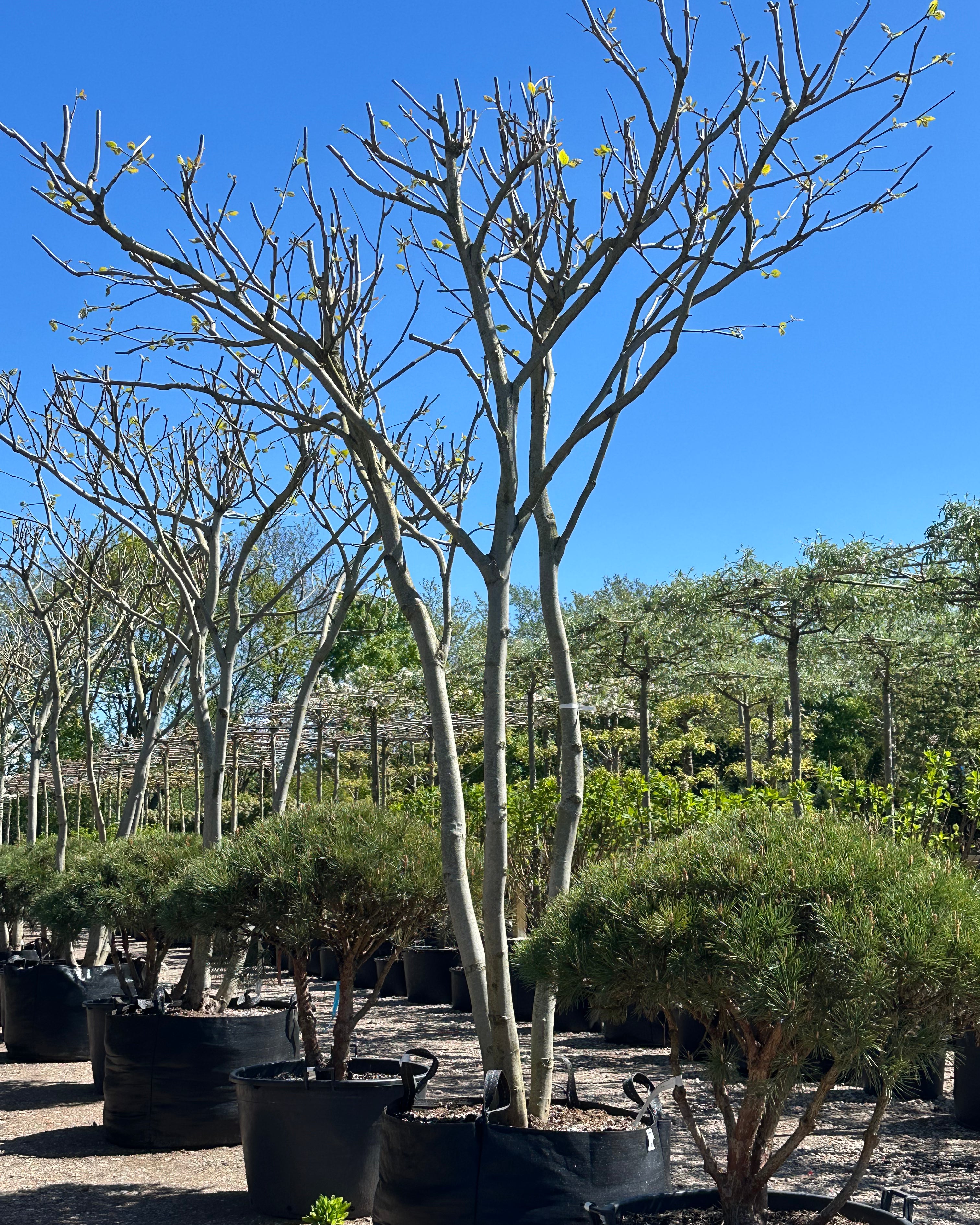 Multistammede træer kan give et mere naturligt udtryk og minder om den vilde natur, hvor træer ofte vokser i denne form.