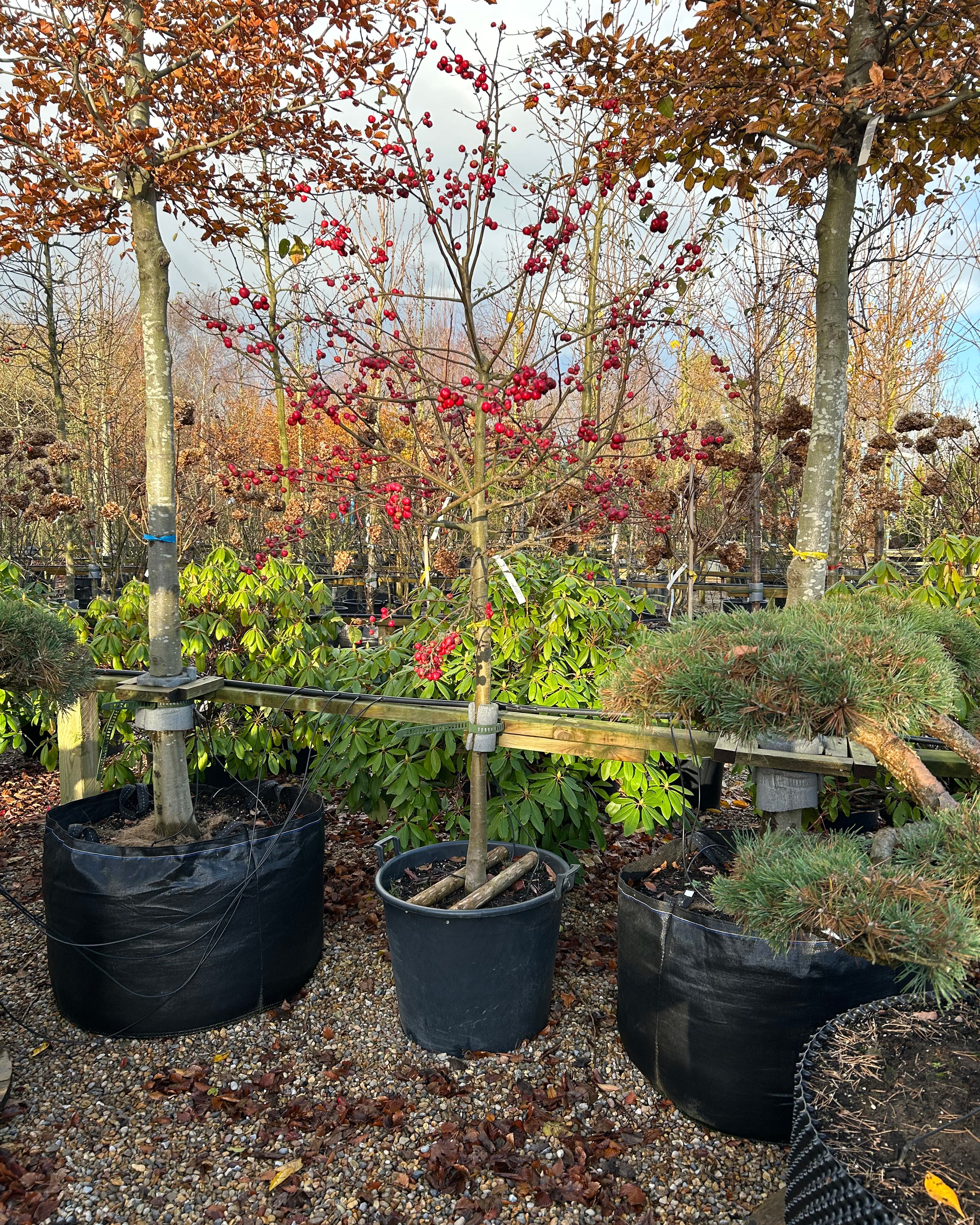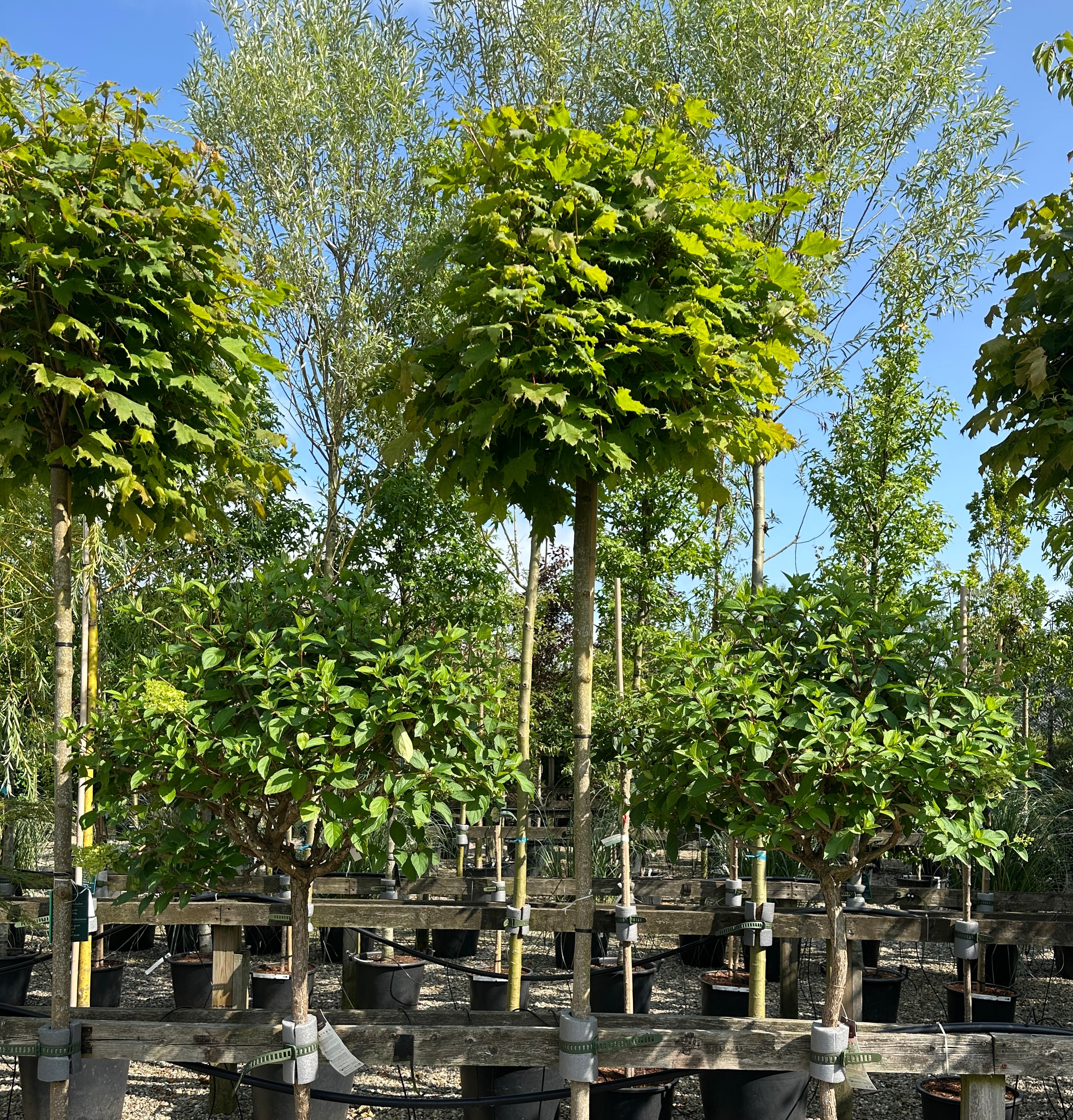 Jysk Plantesalg har et meget stort udvalg af opstammede træer i mange størrelse og sorter. Plantelageret ligger i Ribe syd for Esbjerg og er et besøg værd
