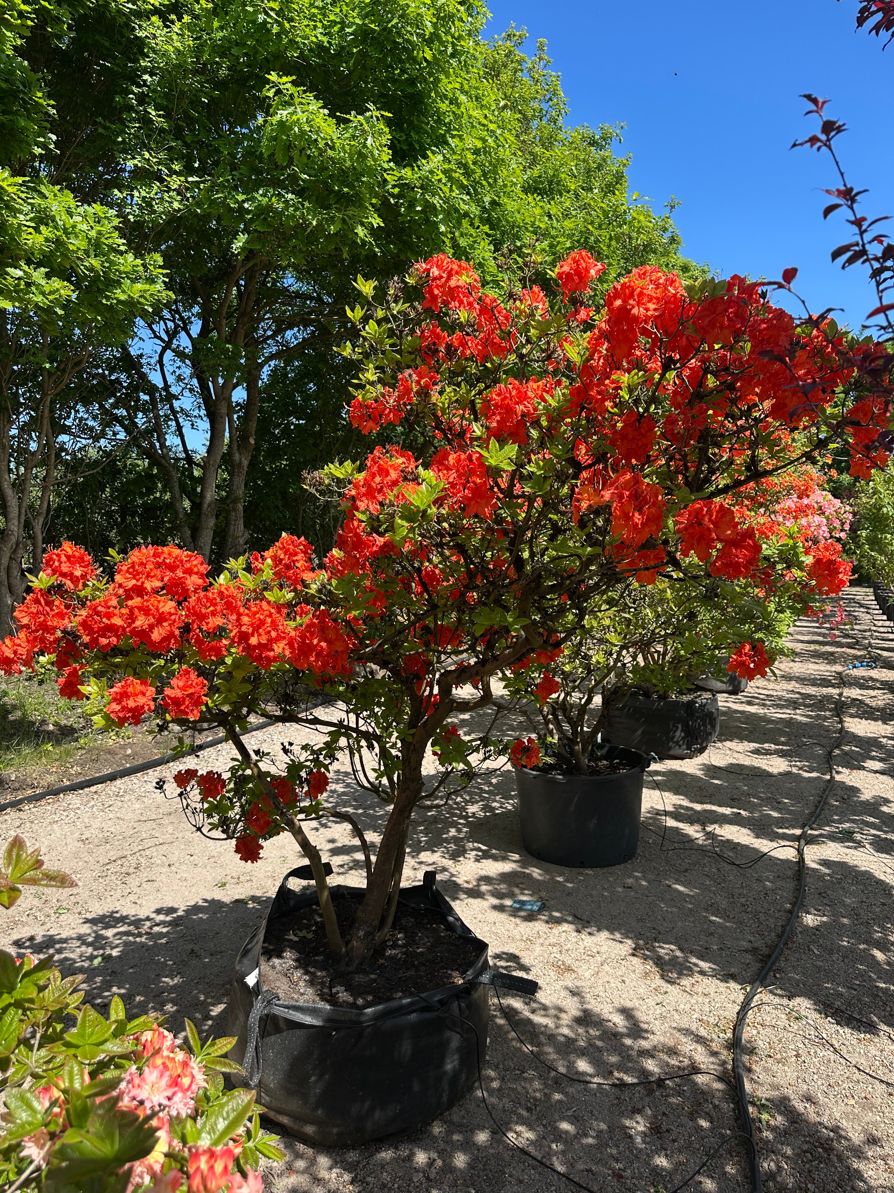Azalea er en populær og smuk blomstrende busk. Azaleaer er kendt for deres farverige blomster og deres evne til at tilføje visuel interesse til haven. De findes i både stedsegrønne og løvfældende varianter. De er værdsat for deres overdådige blomstring og tilpasningsevne til forskellige vækst-betingelser, hvilket gør dem nemme bruge i mange forskellige indretninger i haver-og anlæg.