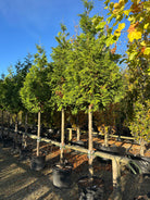 Plantning: Planterne håndteres som beskrevet under håndtering. Lærred og metal trådnet skal blive på klumpen, det forsvinder indenfor 1-2 år.  Hvis trådnet er tæt på rodhalsen, kan der være risikon for at trådnettet kan skade barken. Trådnette skæres derfor væk omkring rodhalsen. Evt plastik og sække der beskytter rodklumpen under transport fjernes inden plantning.
