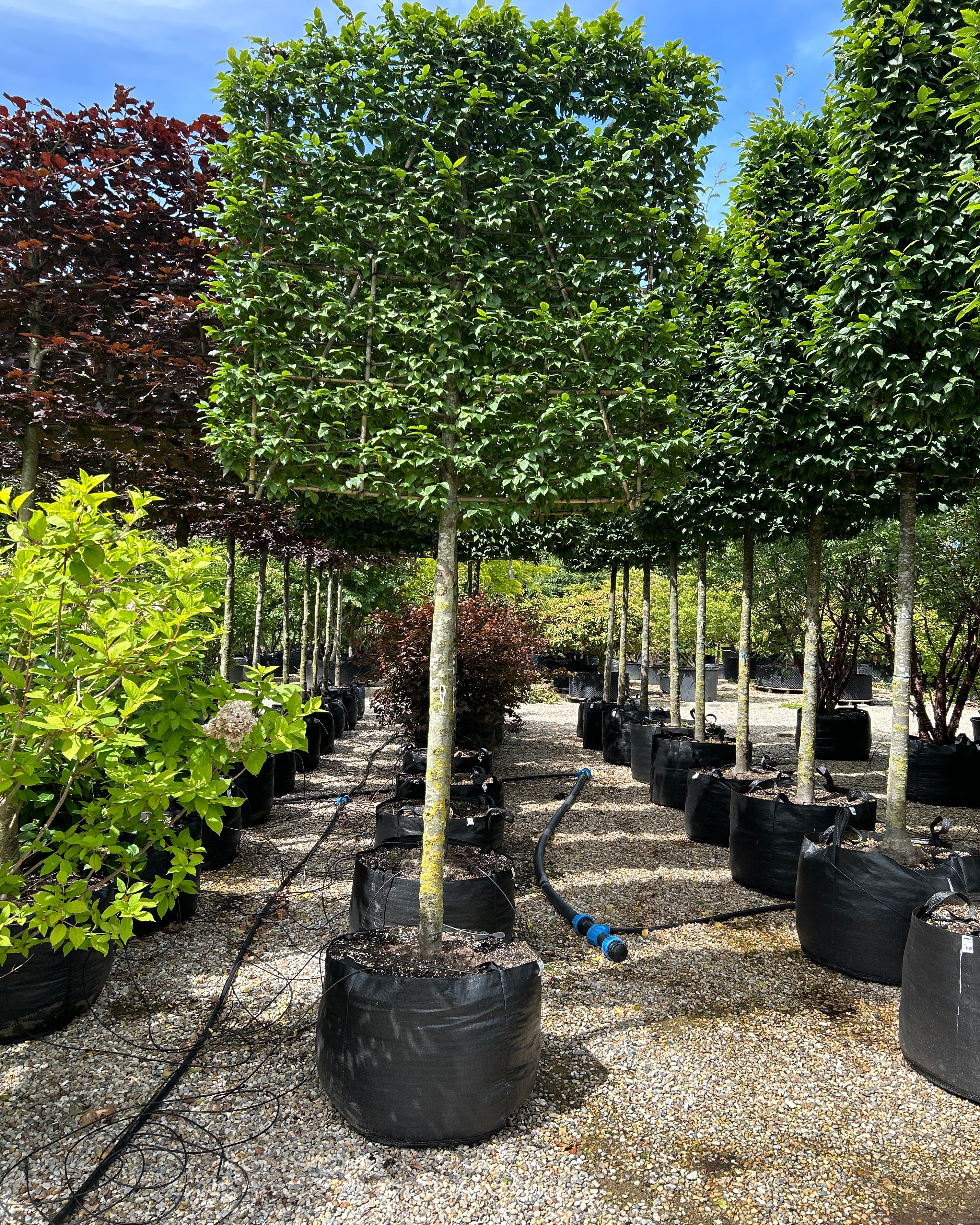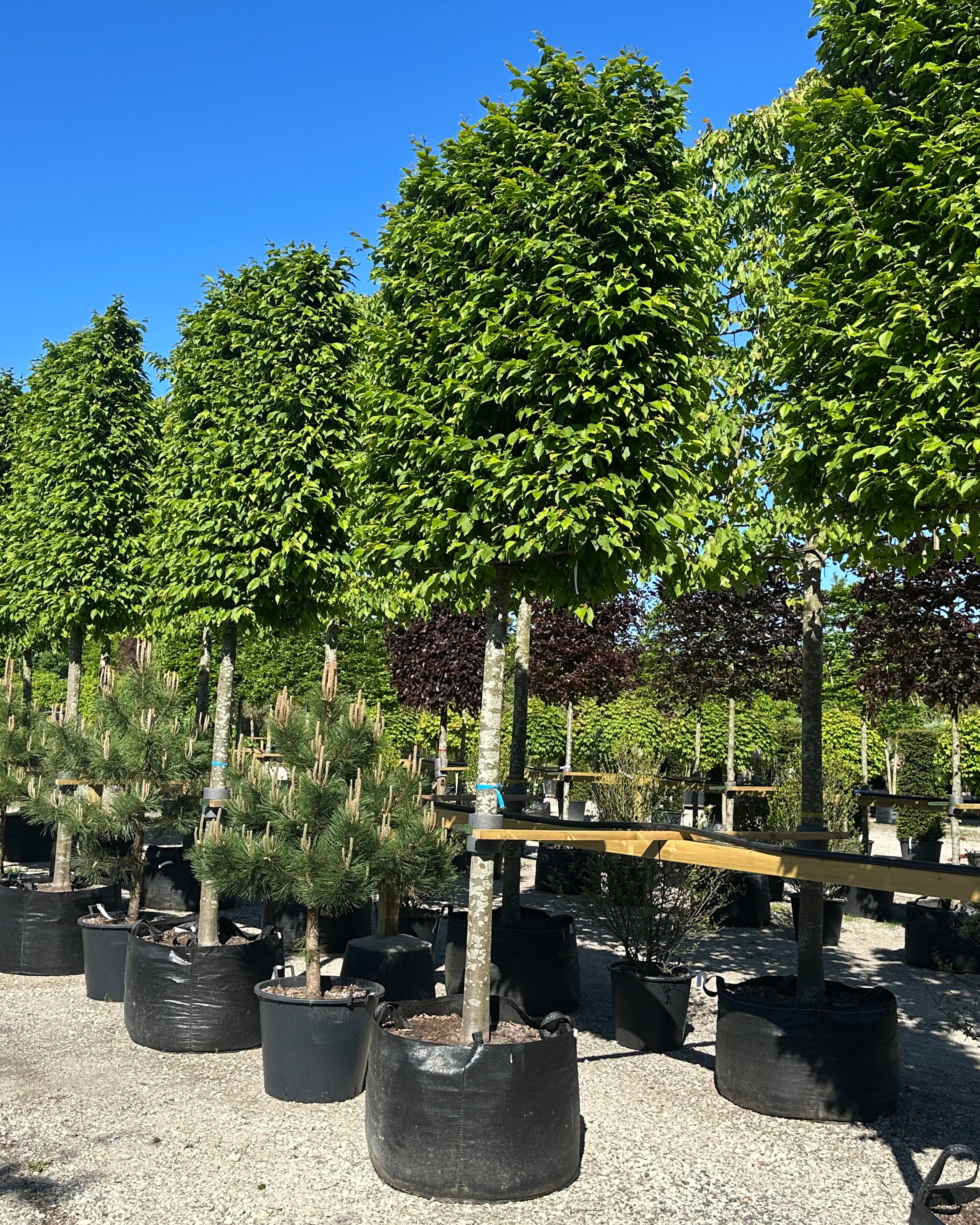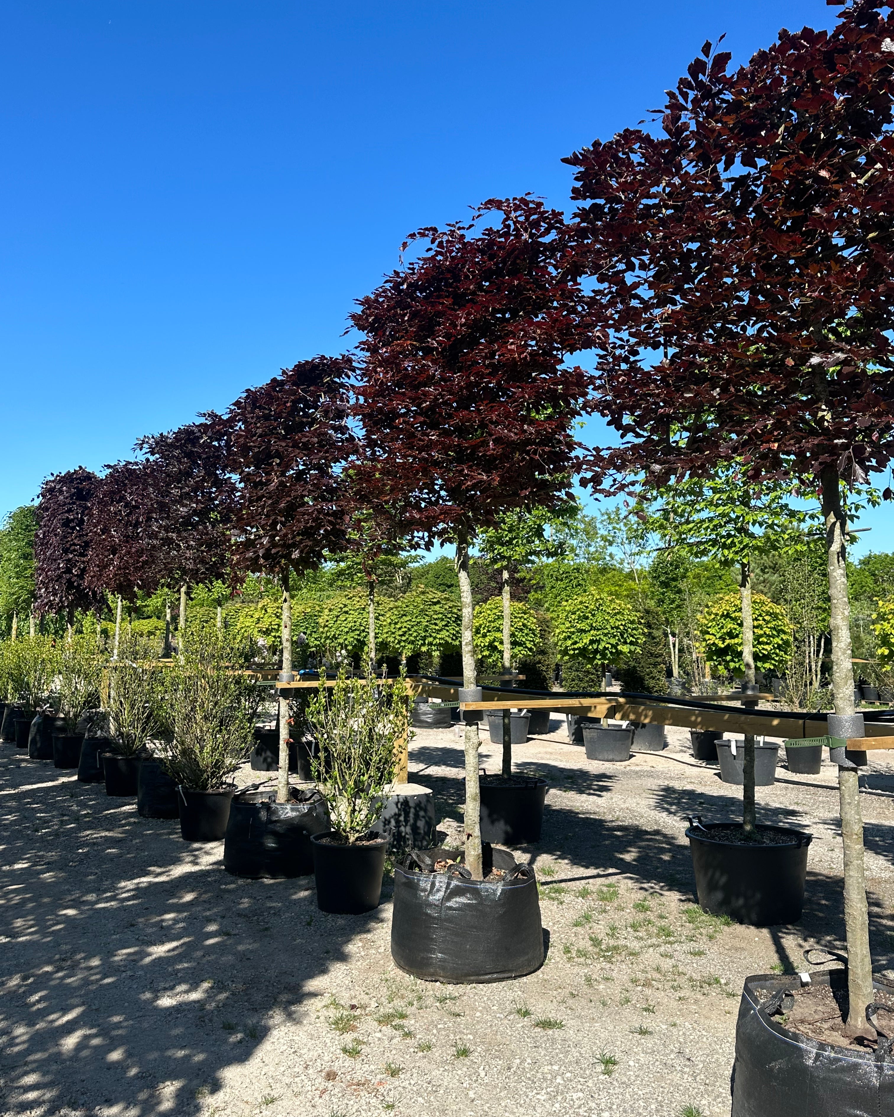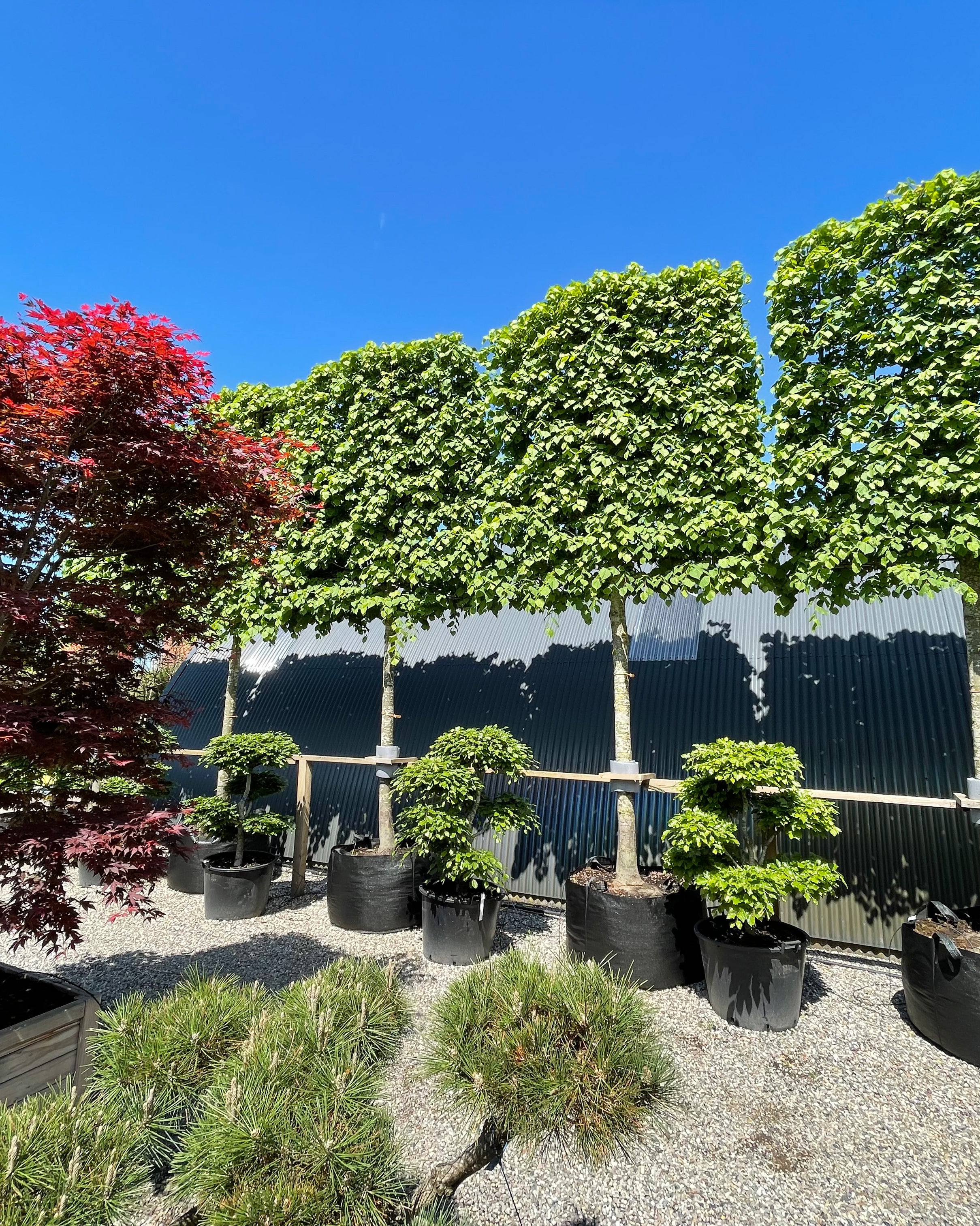 Af sorter kan nævnes Naur – Bøg – Lind – Avnbøg – Blodbøg – Paradisæbletræer rød eller grøn blade - Frugttræer æble og pære