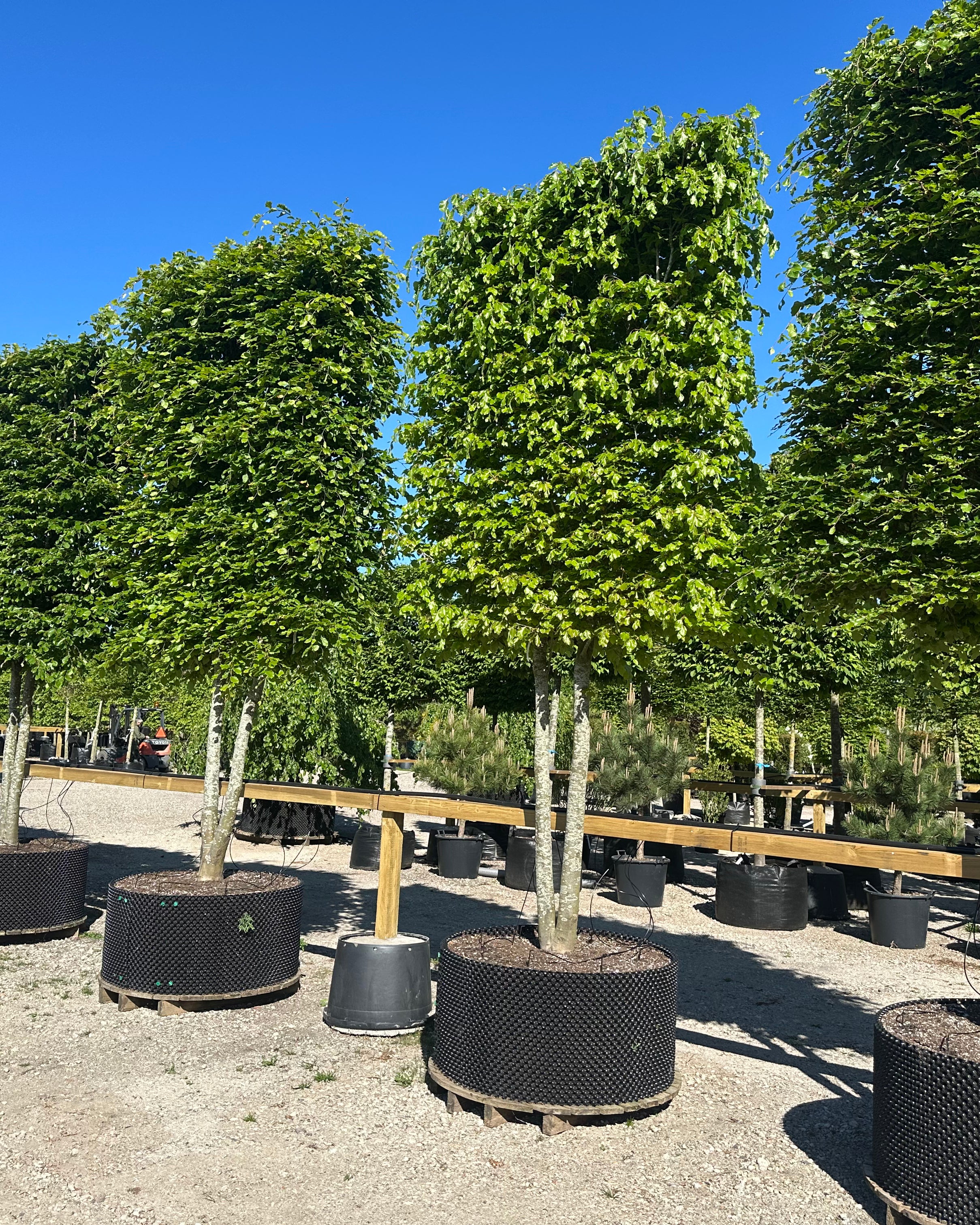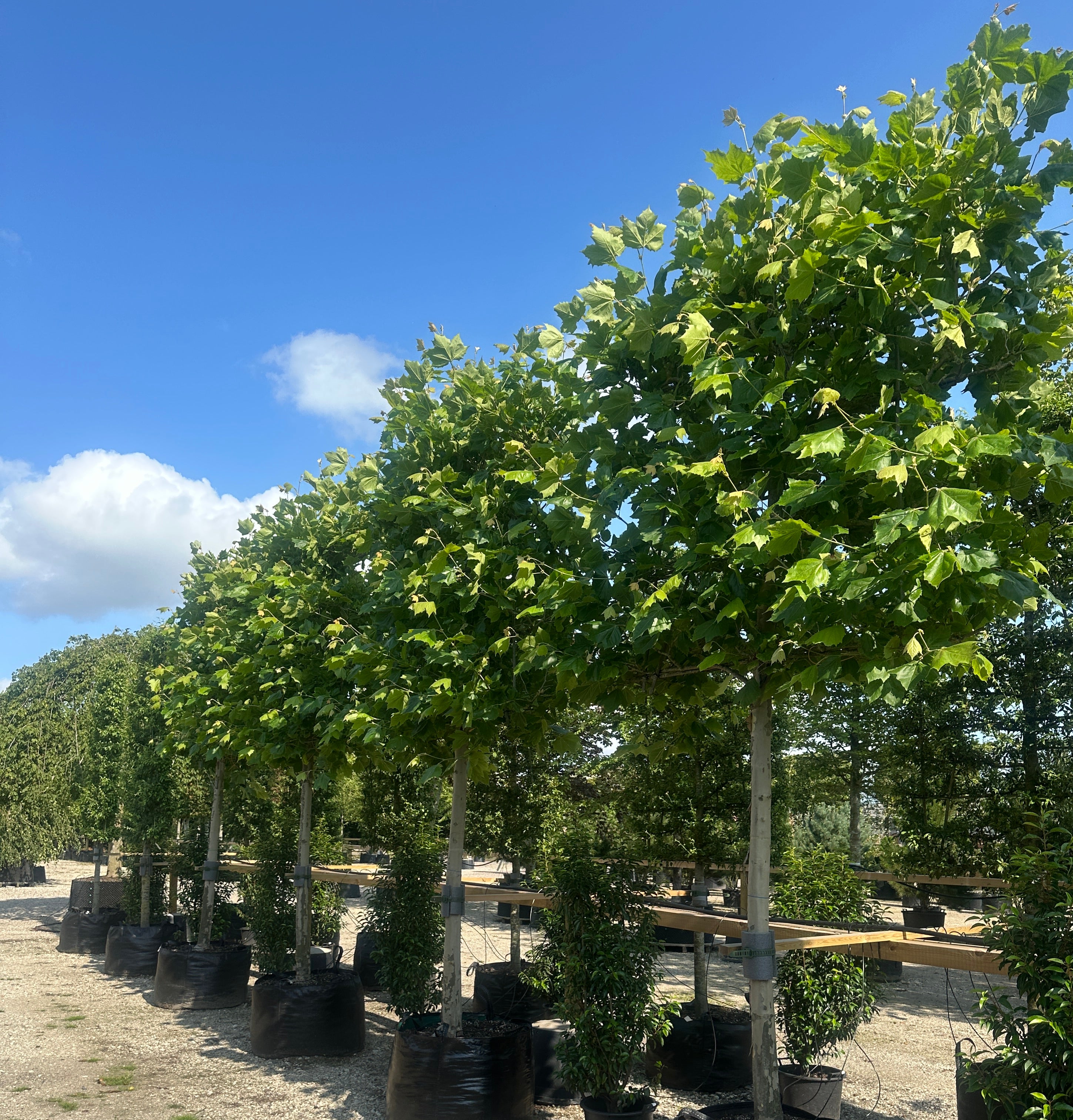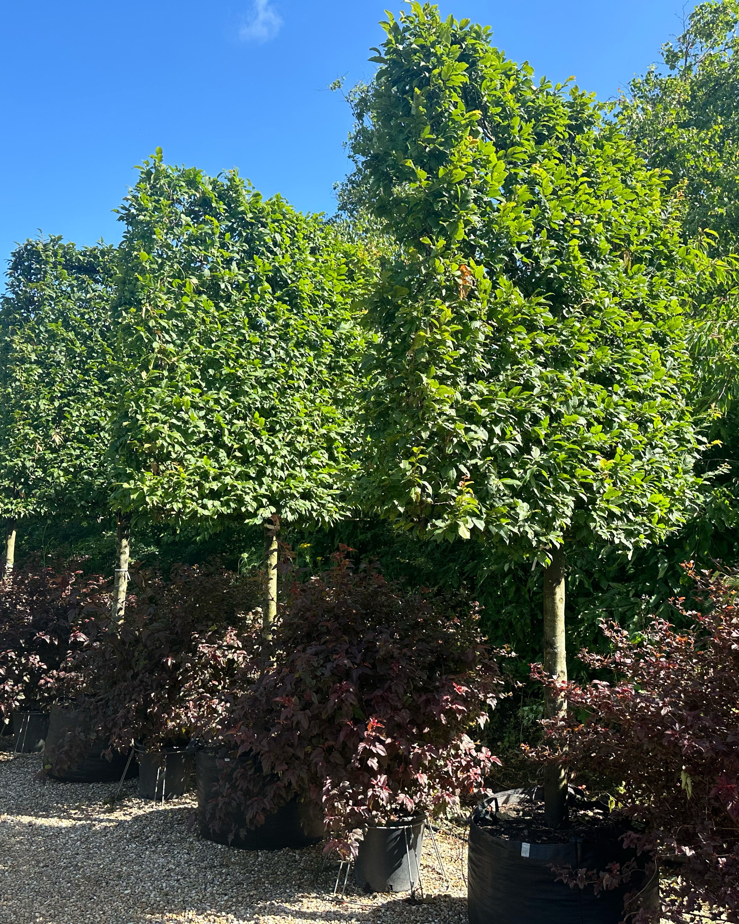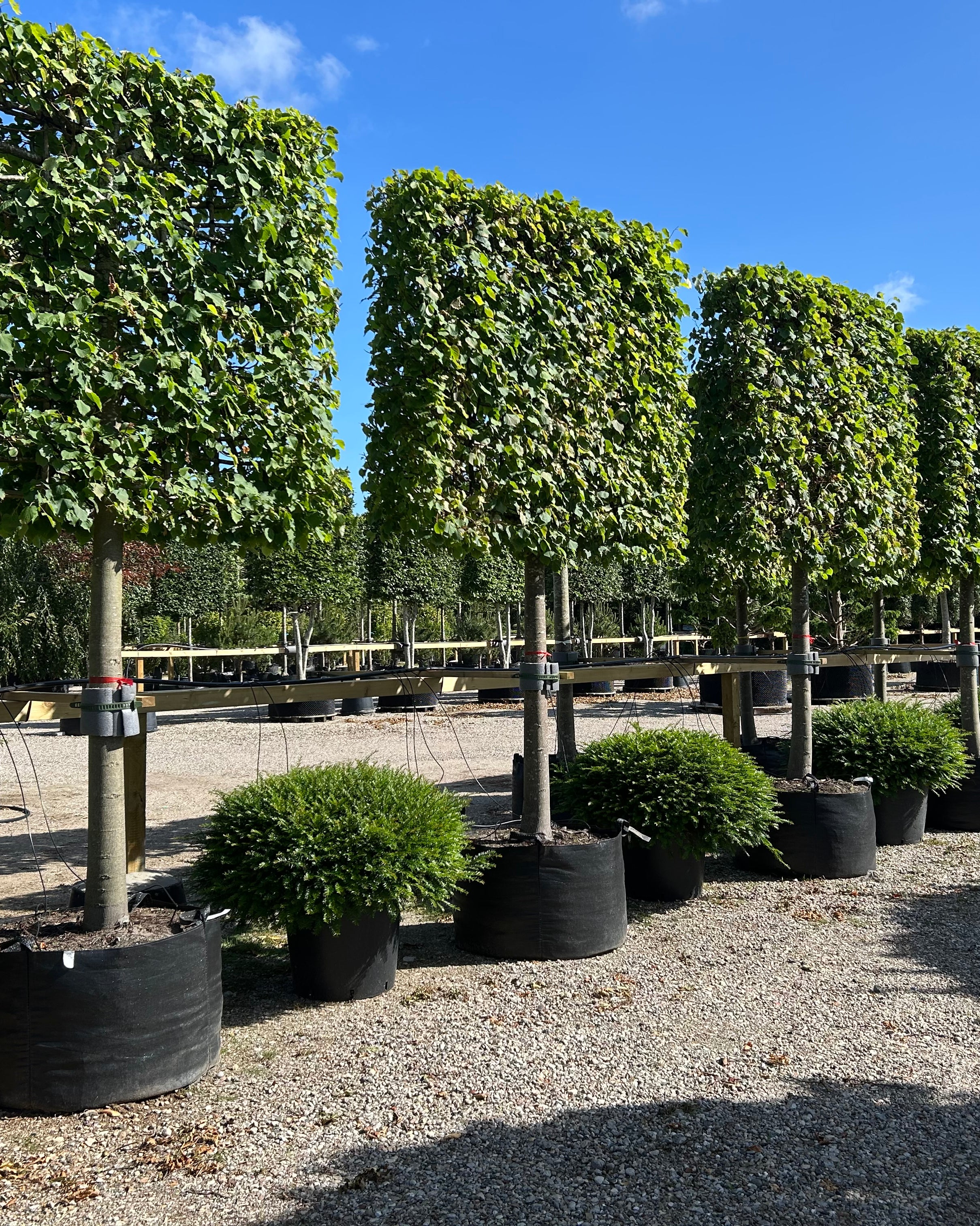 Af sorter kan nævnes Naur – Bøg – Lind – Avnbøg – Blodbøg – Paradisæbletræer rød eller grøn blade - Frugttræer æble og pære