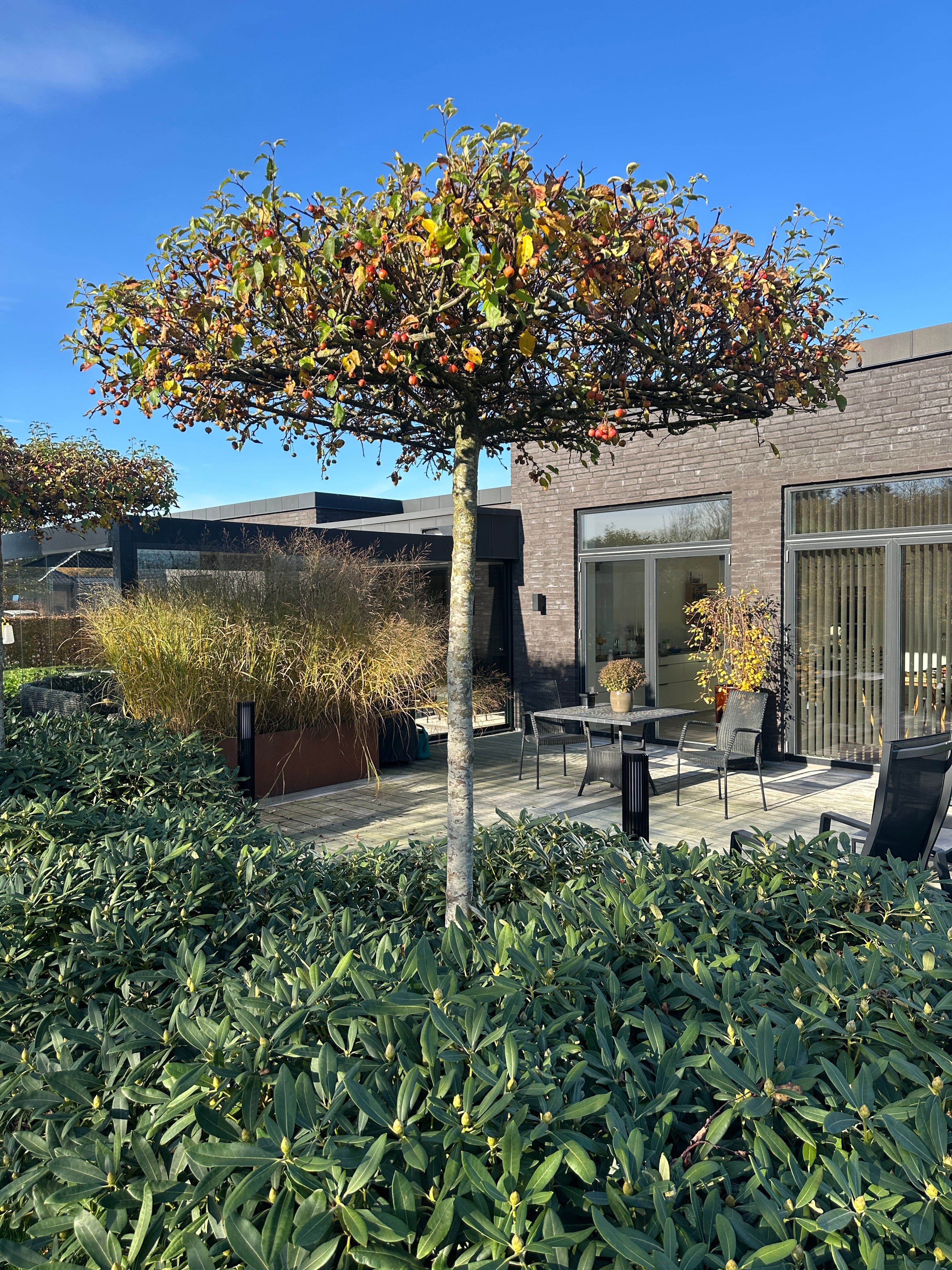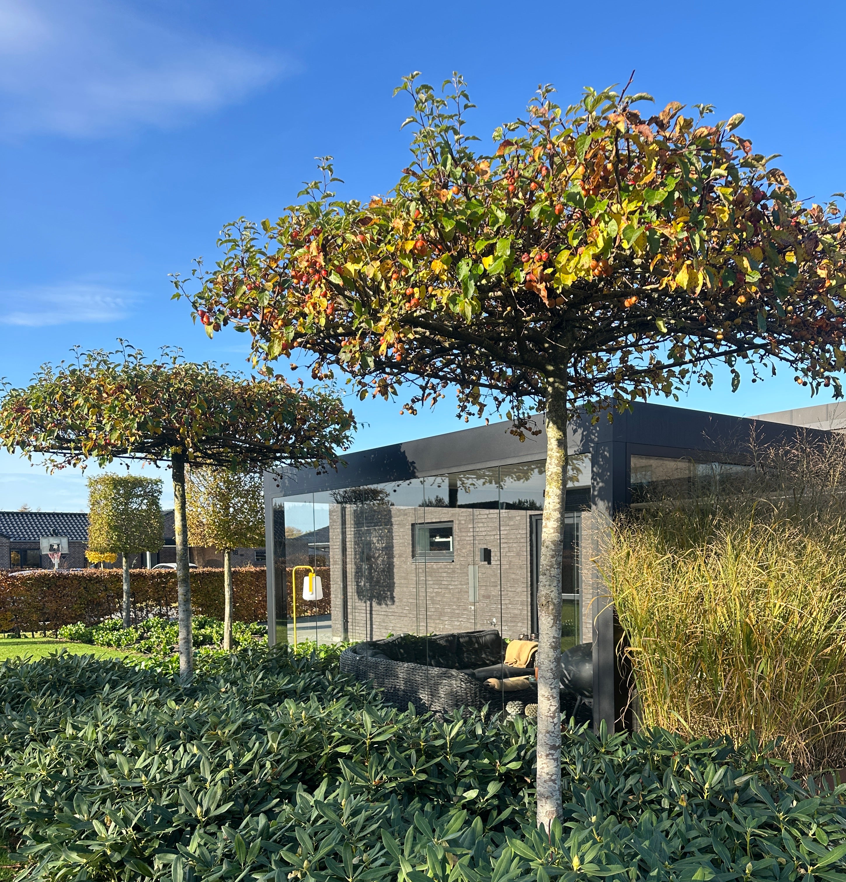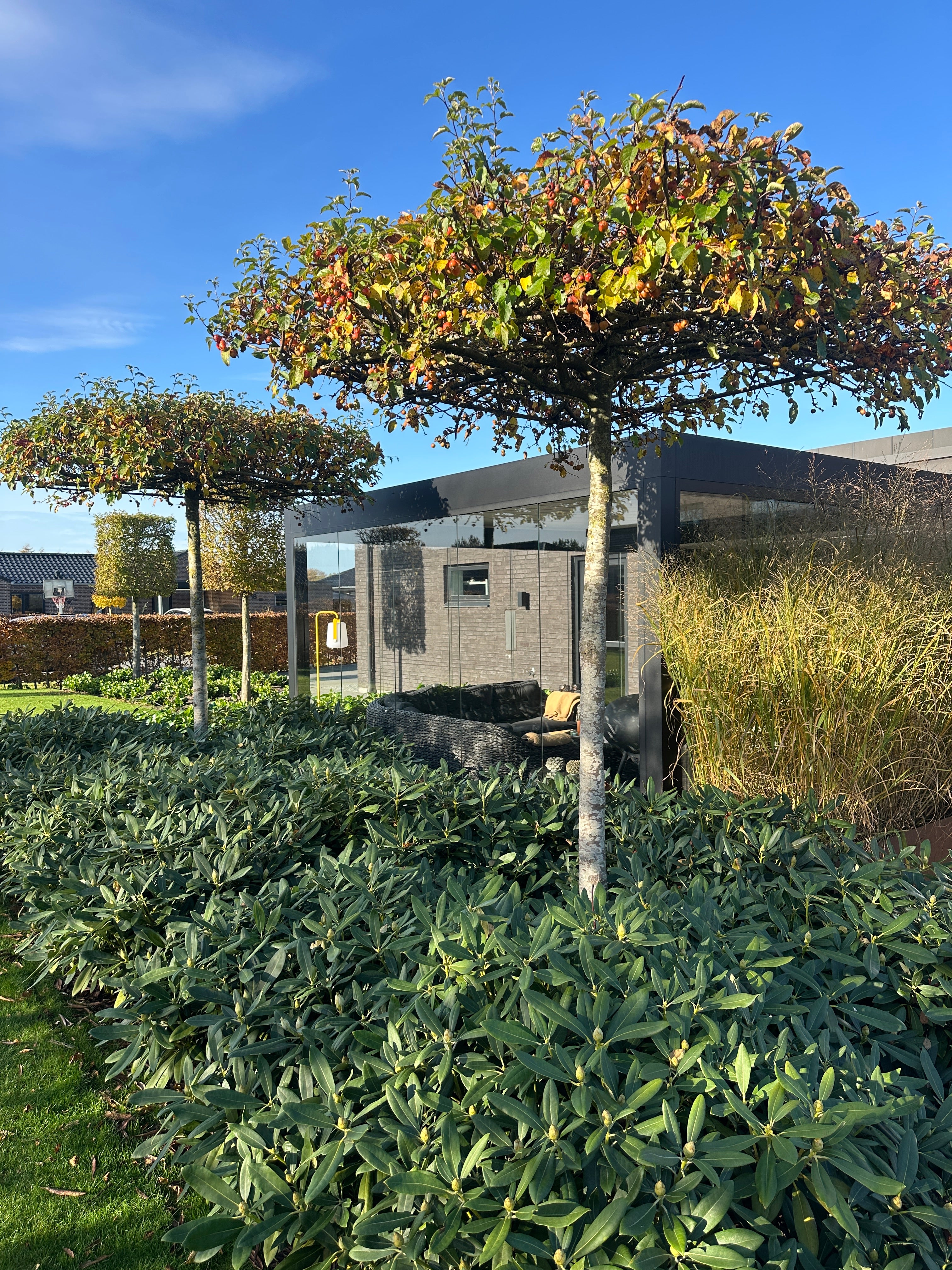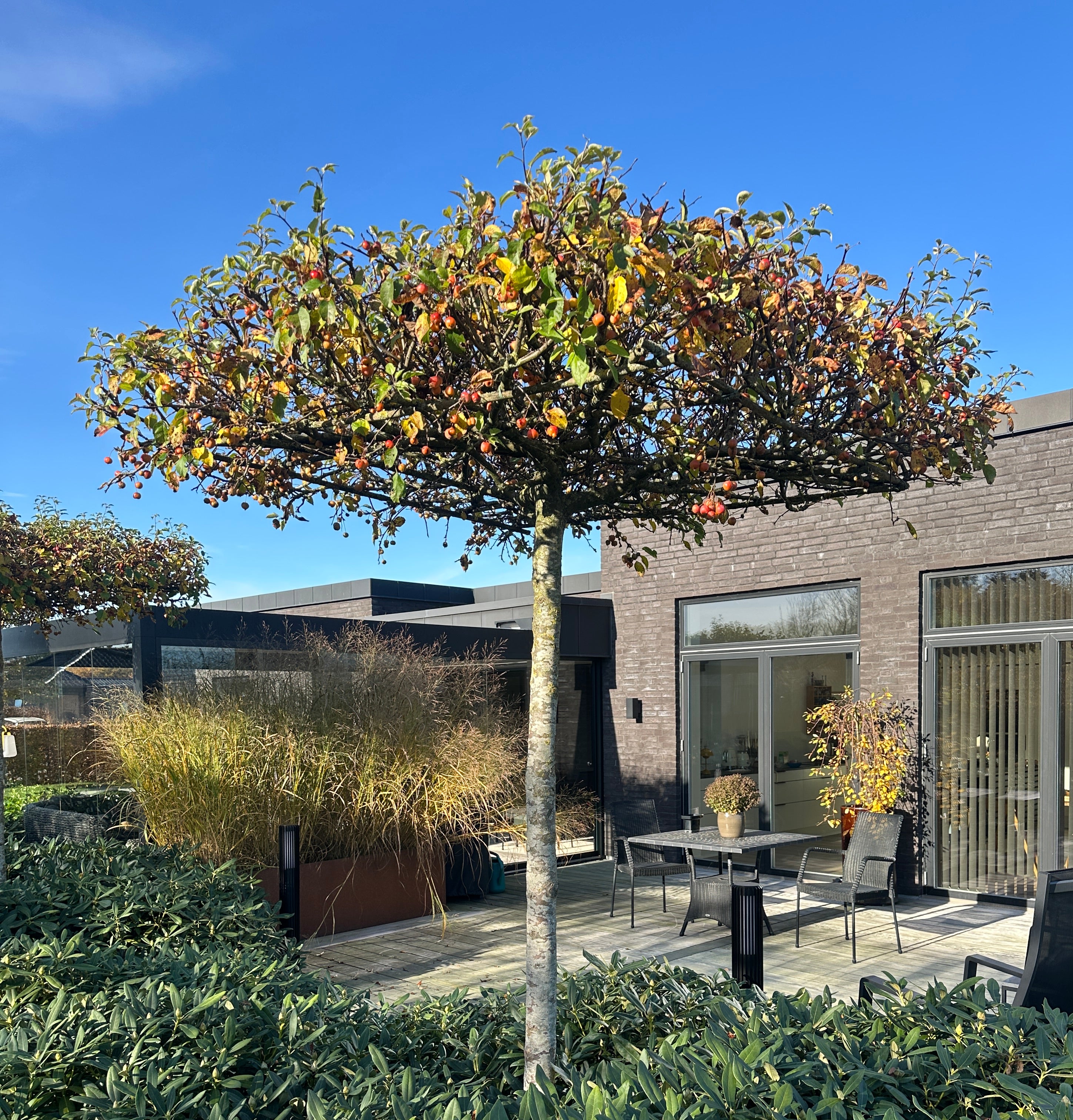 Træerne giver fantastisk rumvirkning i haven og meget velegnet til minimalistiske haver og funkis / kubisk byggestil, eller blot steder hvor man ønsker et karaktergivende udtryk i haverummet.