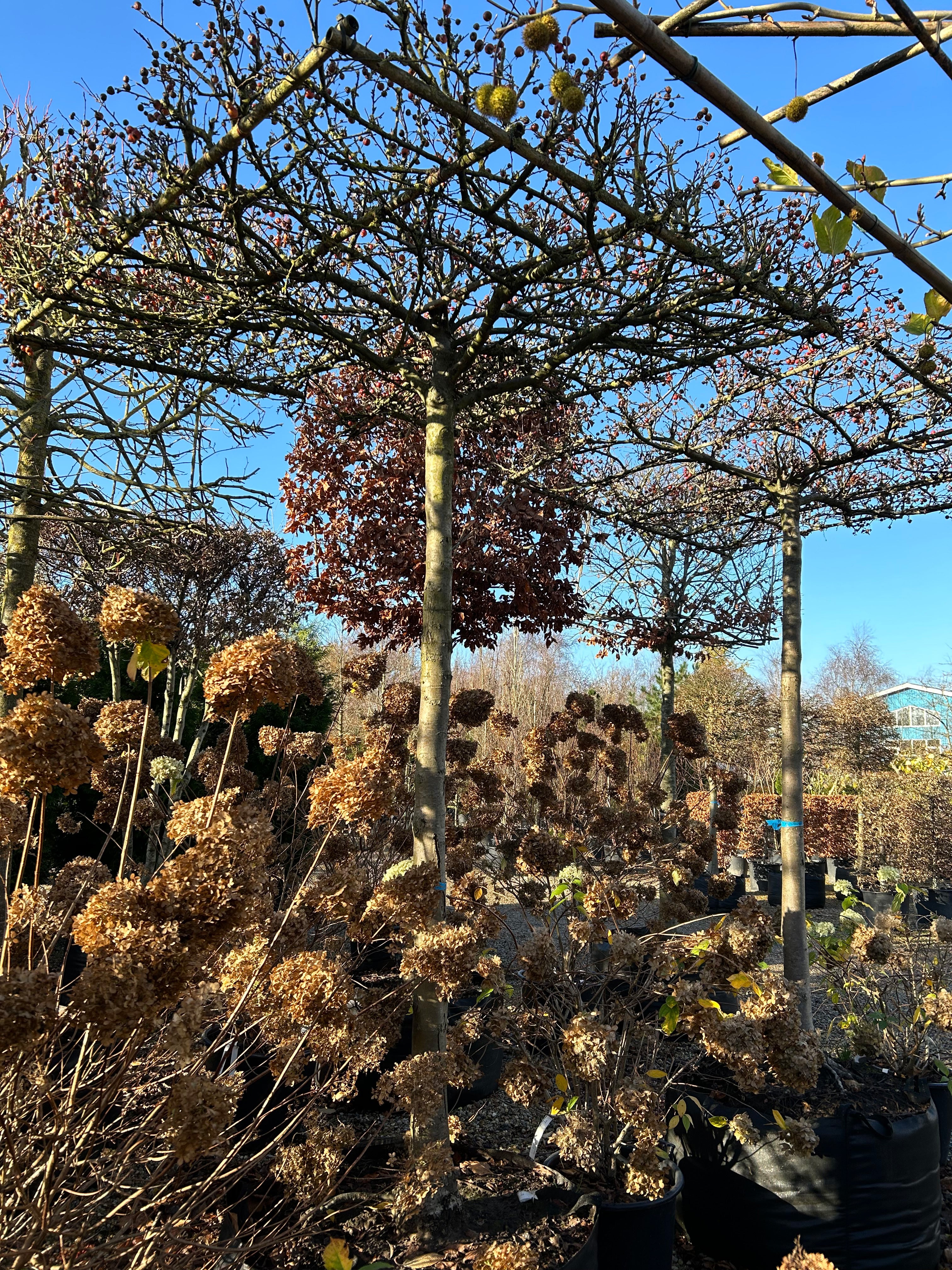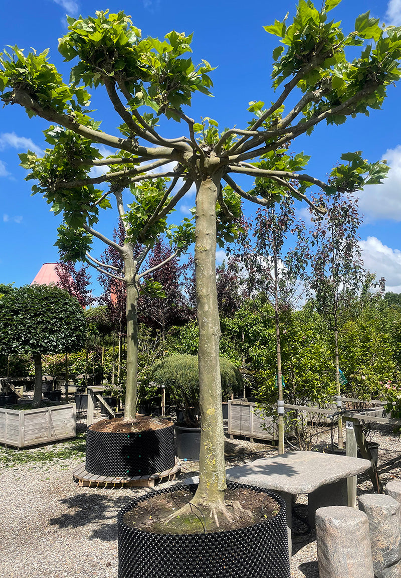 Jysk Plantesalg har et meget stort udvalg tagklippede træer som enkeltstammede eller multistammede træer i mange størrelser og former. Platan, Paradisæbletræer, Naur, Lind mv.