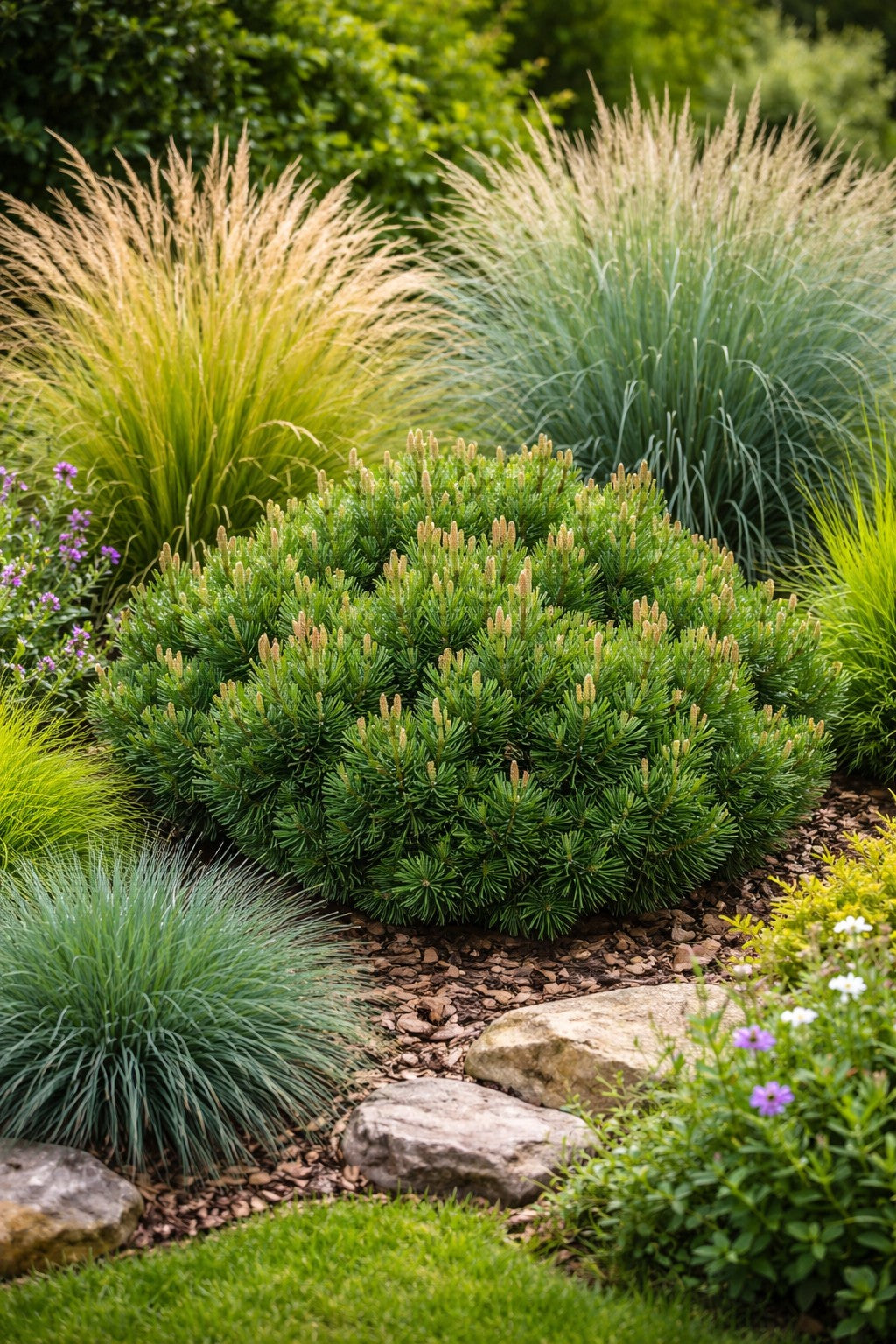 Bjergfyr i kompakt, bredtvoksende form med tæt nålekrone. Den lave vækst og mørkegrønne nåle. Et robust og lavt vedligeholdelsesvalg til små haver og haver med alpine elementer.